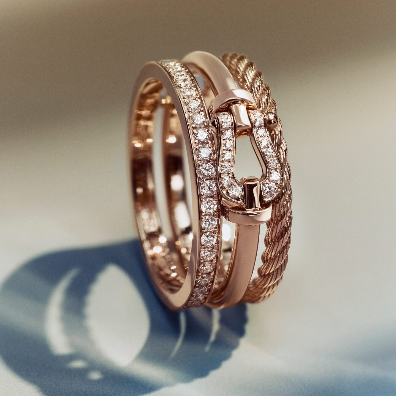 Bước sang năm 2025, FRED tiếp tục mở rộng câu chuyện di sản của mình với Force 10 Rise – phiên bản tái hiện mang hơi thở hiện đại, lấy cảm hứng từ ngôn ngữ thiết kế của một bộ trang sức cao cấp trong dòng High Jewellery. Giữ lại những yếu tố cốt lõi là dây cáp và khóa gài, bộ sưu tập lần này thể hiện tinh thần đồ họa sắc nét hơn. Các chi tiết khóa được đính kim cương pavé, nhấn mạnh bằng dải kim cương xếp thẳng hàng, tạo nên sự tương phản tinh tế giữa đường cong của dây bện và hình khối hình học của phần khung. Ra mắt với hai phiên bản vàng hồng và vàng trắng, Force 10 Rise mang đến diện mạo mới với cấu trúc rõ ràng và rạng rỡ hơn, nhưng vẫn trung thành với DNA của biểu tượng gốc.