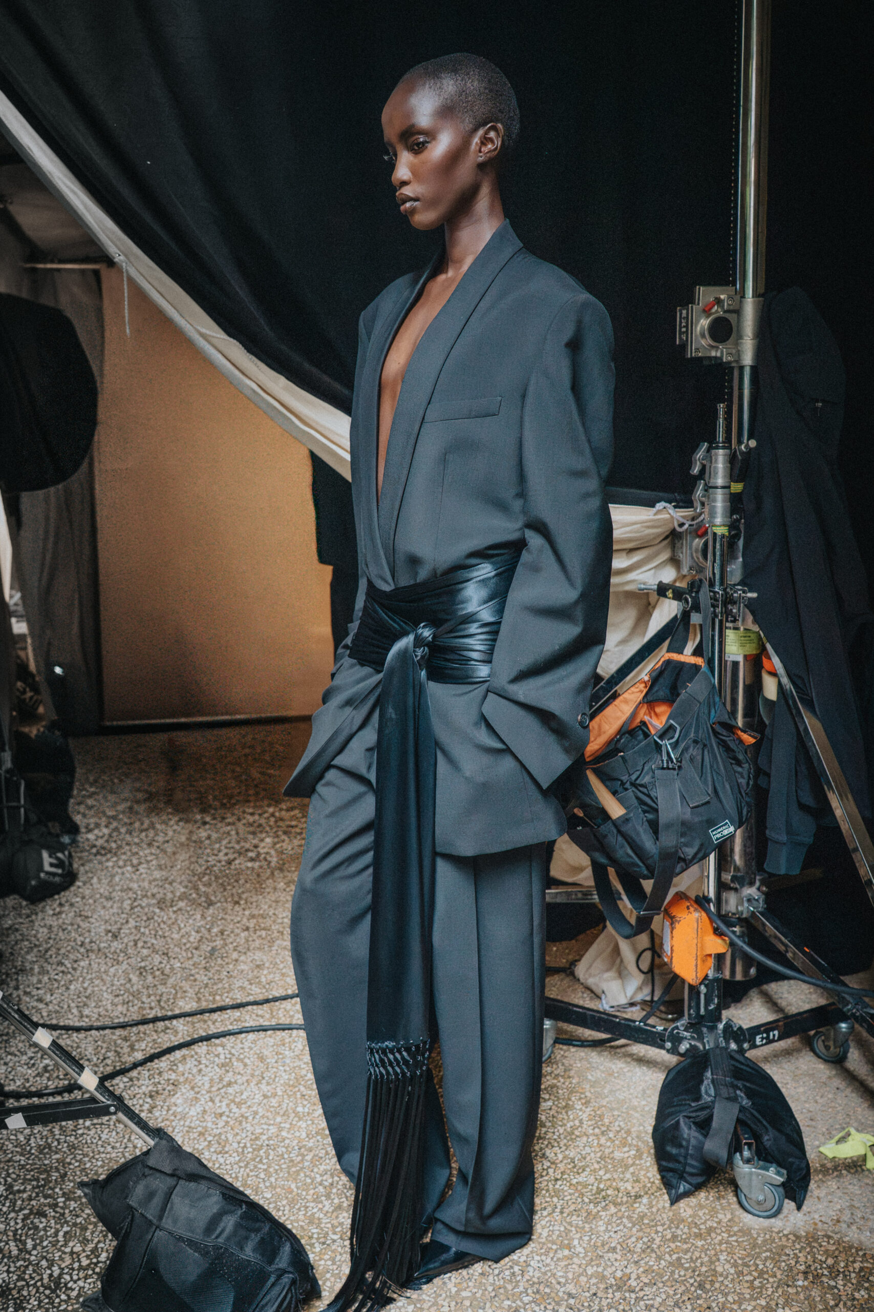 Tinh thần thanh thoát và tự do của thời đại cũng được khắc họa rõ nét cùng những bộ vest lấy cảm hứng từ không khí hộp đêm sôi nổi, váy suông thẳng điểm xuyết ren mảnh, những chiếc đầm với đường eo hạ thấp và phần lưng khoét sâu đầy gợi cảm. “Đó là thời khắc phụ nữ kiến tạo một vẻ đẹp nữ tính mới – một lời tán dương cho tự do, cho quyền làm chủ chính mình,” Davis chia sẻ. “Con người khi ấy đang tìm cách mở ra không gian riêng, nổi loạn trước những khuôn thước xã hội, và tinh thần ấy được phản chiếu trong từng đường may, nếp gấp của trang phục.” Ở thời trang nam giới, phong vị phóng khoáng của thời kỳ Phục hưng Harlem cùng sự hào hoa, lối ăn mặc cầu kỳ đã thổi bùng nguồn cảm hứng. Trong khi chiếc cà vạt – biểu tượng quen thuộc của nam giới lại được biến tấu thành dải lưng quấn quanh áo lễ phục, hay ghép thành mảng vải độc đáo trên những chiếc váy duyên dáng.
