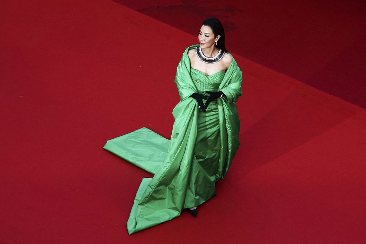 Dương Tử Quỳnh mang hào quang “Nữ diễn viên chính xuất sắc nhất” từ Oscar tới thảm đỏ và không quên lựa chọn một nhà kim hoàn danh tiếng để đồng hành. Cô chọn bộ trang sức Boucheron đen trắng với vòng cổ Grosgrain bằng vàng trắng đính đá thạch anh xanh và kim cương, phối cùng chất liệu sơn mài. Ngoài ra, nữ minh tinh còn đeo hoa tai, vòng tay và nhẫn từ nhà mốt.