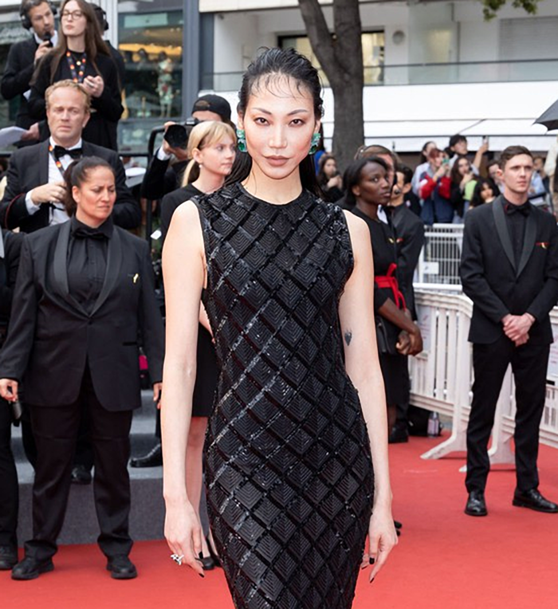 soo joo parl ← Previous Next → Siêu mẫu Soo Joo Park phối đầm đen đính sequin của YSL với bông tai từ đá tourmaline và ngọc lục bảo nằm trong cấu trúc bạch kim lấp lánh, bên cạnh chiếc nhẫn cũng đính ngọc lục bảo bản to sang trọng.