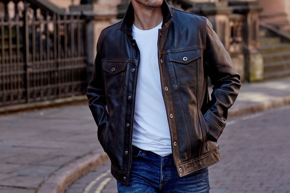 thời trang nam – 70s – cổ điển – phối đồ quần áo – áo khoác da quần jeans – luxuo