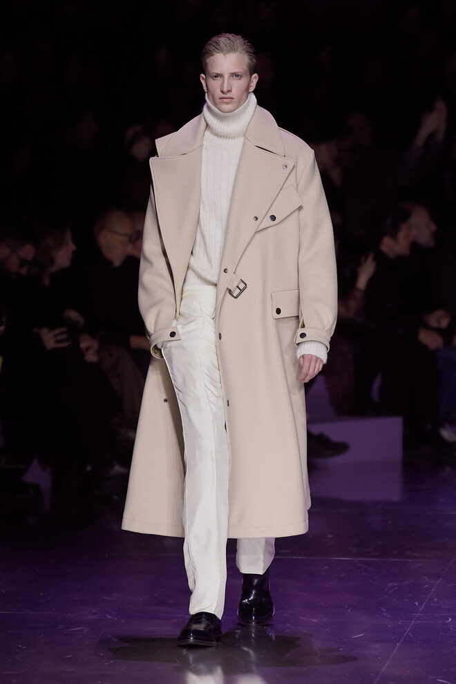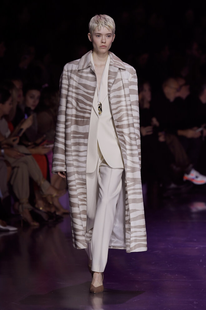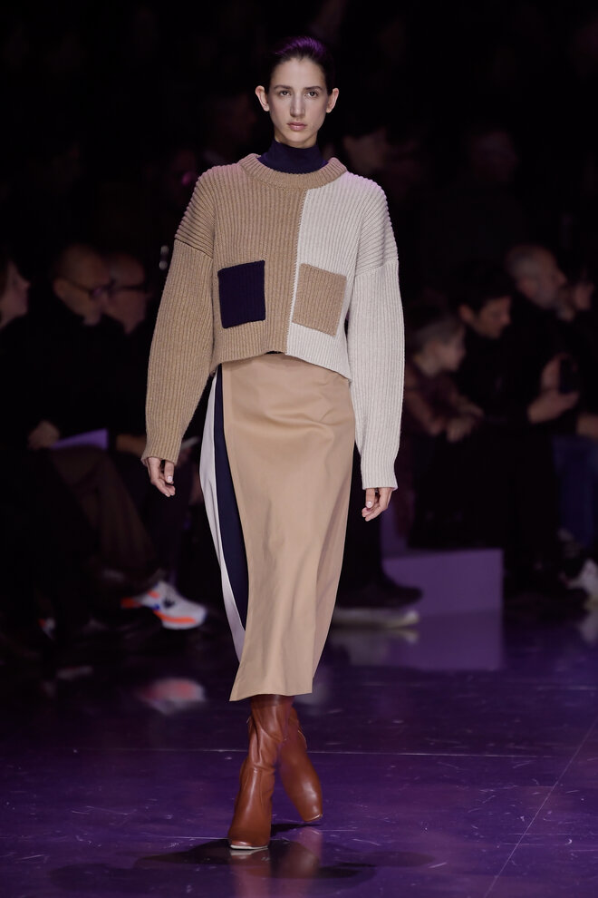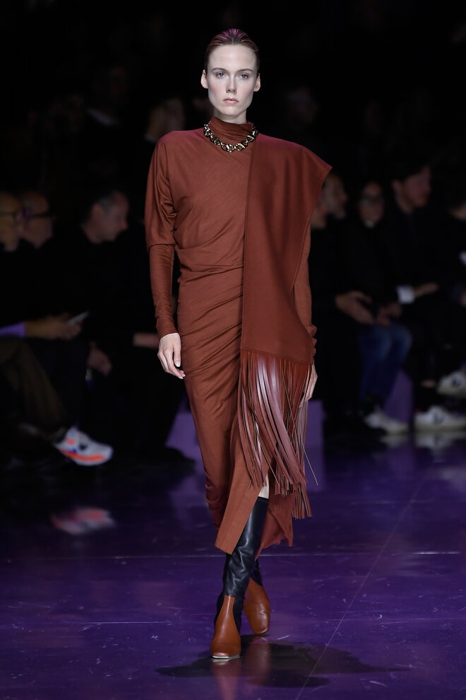 Nếu màu đỏ rực rỡ và màu san hô tươi mới làm nổi bật bảng màu mùa thu chủ đạo với các màu trầm như nâu, kem, ghi xám và đen, thì màu tím tử đinh hương lại là điểm nhấn đối lập hoàn hảo. Sáng tạo mới mẻ trong việc xử lý màu sắc với phong cách color block gồm ba đến bốn màu trên một bộ trang phục khác nhau thay thế cho phong cách đơn sắc, tối giản từ những mùa trước.