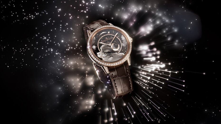 Lấy cảm hứng từ sự kỳ diệu của những ngôi sao băng, các nghệ nhân tại Jaeger-LeCoultre Métiers Rares atelier đã vận dụng kỹ năng chế tác điêu luyện của mình theo cách mới để mô tả vẻ đẹp và sự bí ẩn của bầu trời đêm. Được bao bọc bởi chiếc vỏ vàng đính kim cương có kích cỡ 36mm là phiến mặt số có cấu tạo gồm 3 lớp, với lớp đầu tiên bằng sapphire tô điểm bởi họa tiết ngôi sao li ti trên cả hai mặt, cùng một mặt trăng lưỡi liềm với rặng mây tại hướng 6 giờ nhằm che đi ngôi sao băng được chạm rỗng trên nền chiếc đĩa xoay bằng titan khi hoạt cảnh chưa khởi động.