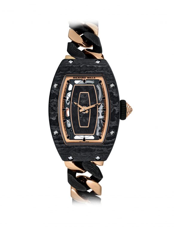 Trong năm nay, các bộ sưu tập đồng hồ nữ của Richard Mille đã đánh dấu cho bước tiến mới nhất trong quỹ đạo phát triển không ngừng của Carbon TPT®. Đó chính là hai thiết kế mới trong bộ sưu tập RM 07-01 Automatic – một biểu tượng trong vũ trụ đồng hồ của Richard Mille. Được tô điểm theo cách chưa từng có là RM 07-01 Automatic Starry Night, với các họa tiết ngôi sao được đính bằng đá quý và RM 07-01 Automatic với dây đeo dạng mắc xích mở được dát vàng và Carbon TPT®.