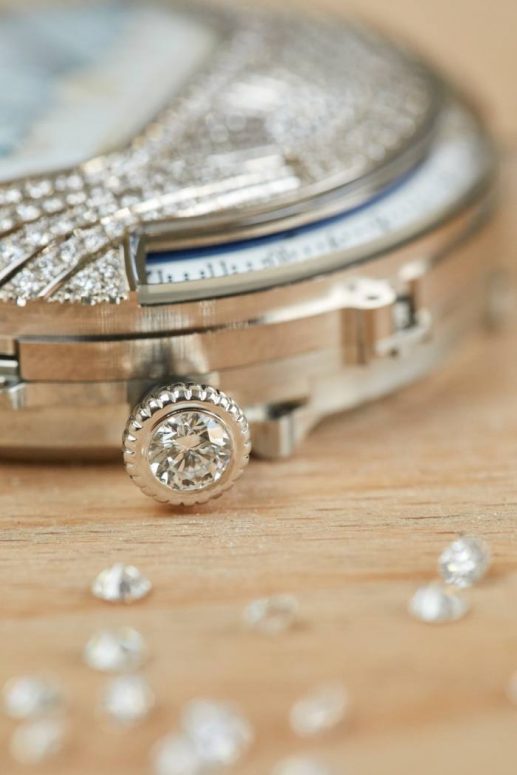 Đó là sự phức tạp đáng chú ý nhất các tác phẩm đồng hồ từ Van Cleef & Arpels. Chỉ cần nhấn chiếc nút bằng đá quý, các bộ phận rèm, một sàn múa ba lê di chuyển trước mắt, trong khi tiếng nhạc lung linh phát ra từ giữa các viên kim cương bao phủ vỏ máy. Chỉ với 20 giây, màn trình diễn kỳ diệu ghi dấu ấn cả thập kỷ thiết kế, cẩn thận, khéo léo, thử nghiệm, để có thể tạo ra vở ba lê nhỏ bé trên cổ tay này.