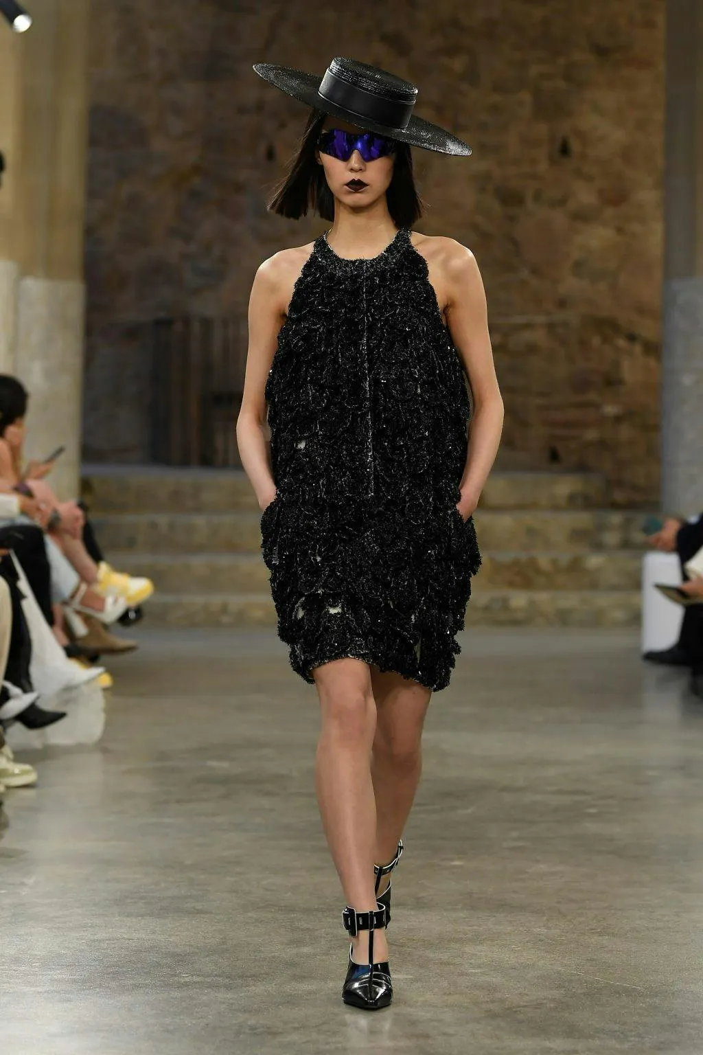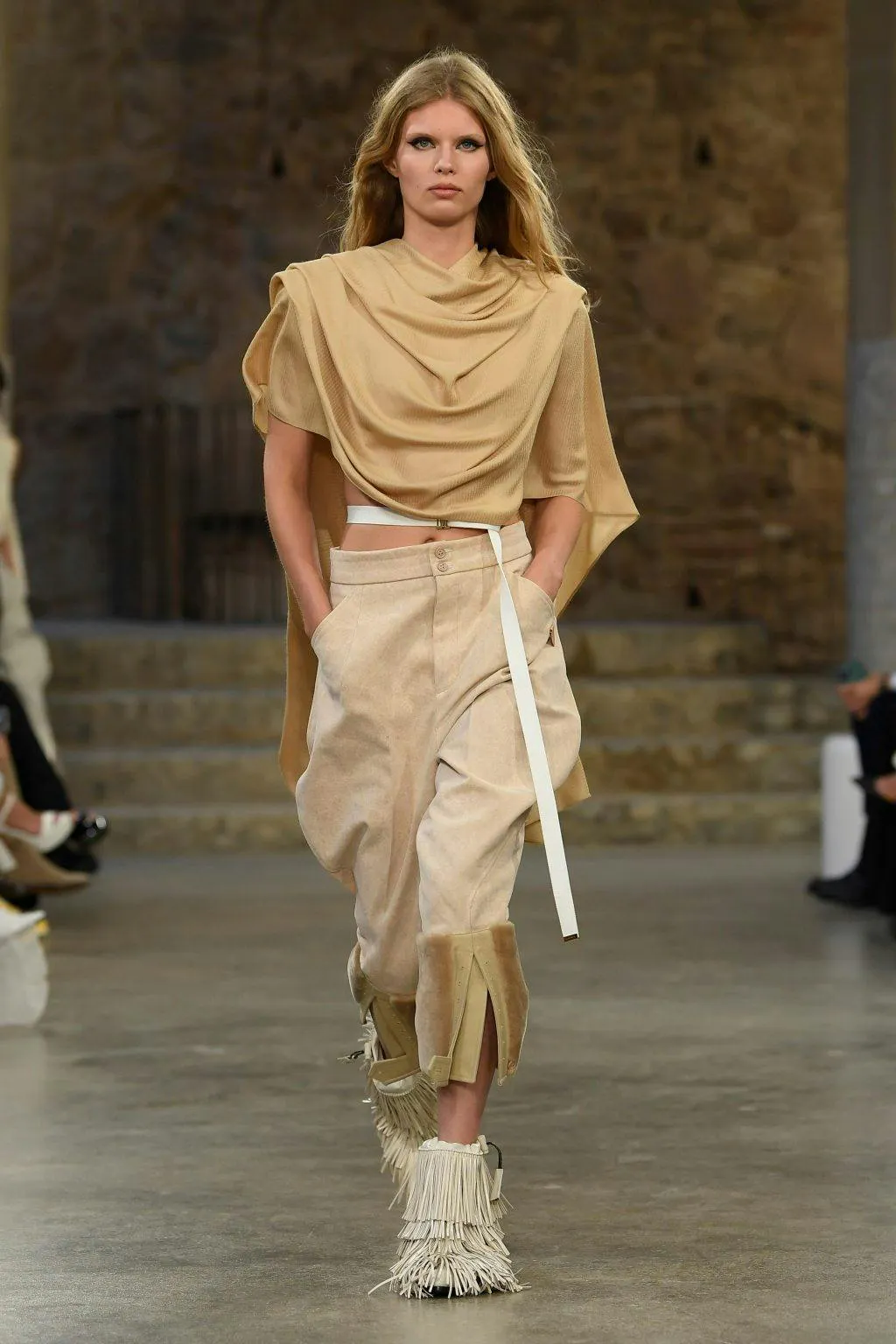 Khi hoàng hôn dần buông xuống, khách mời sẽ tiến vào căn phòng Hypostyle, nơi có những chiếc ghế dài uốn quanh những cây cột chống đỡ lớn. Những look đầu tiên xuất hiện dưới nền nhạc vui tươi kết hợp giữa bản “Music for Chameleons” do Grry Numan thể hiện và “Madame Butterfly” do Malcolm McLaren trình bày, mang tinh thần của những ngày hè sắp đến gần. Ghesquière đã giới thiệu những bộ cánh mang âm hưởng từ Tây Ban Nha với bảng màu trung tính đơn sắc cùng phom dáng ấn tượng. Những chiếc mũ sombrero được làm mới tinh tế hơn, hoạ tiết chấm bi lấy cảm hứng từ trang phục trình diễn từ nhạc dân gian Flamenco phối cùng tua rua hoà hợp vào phom dáng đặc trưng của nhà mốt.