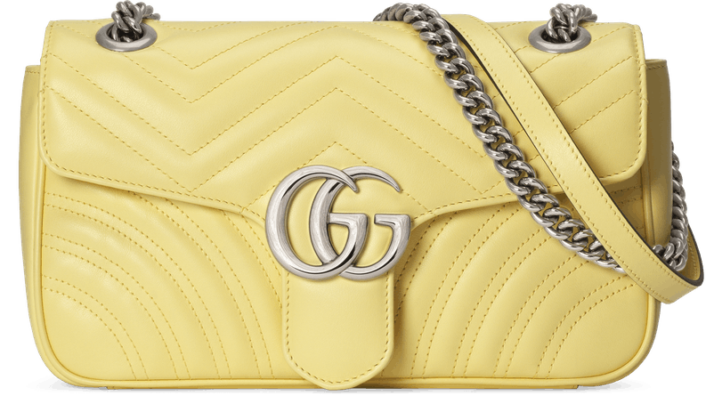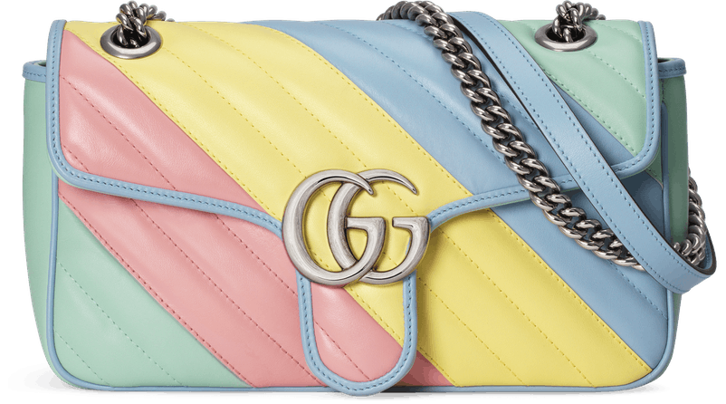 Chiếc túi đeo vai Marmont này toát lên vẻ đẹp tươi sáng, may mắn và hạnh phúc. Nổi bật với tông màu pastel trong chất liệu da mịn và trong suốt, Marmont còn gây ấn tượng với quai cầm và logo GG kim loại trắng. Với chiếc túi, phái đẹp có thể diện đi chơi, đi mua sắm, đặc biệt là trong những bữa tiệc.