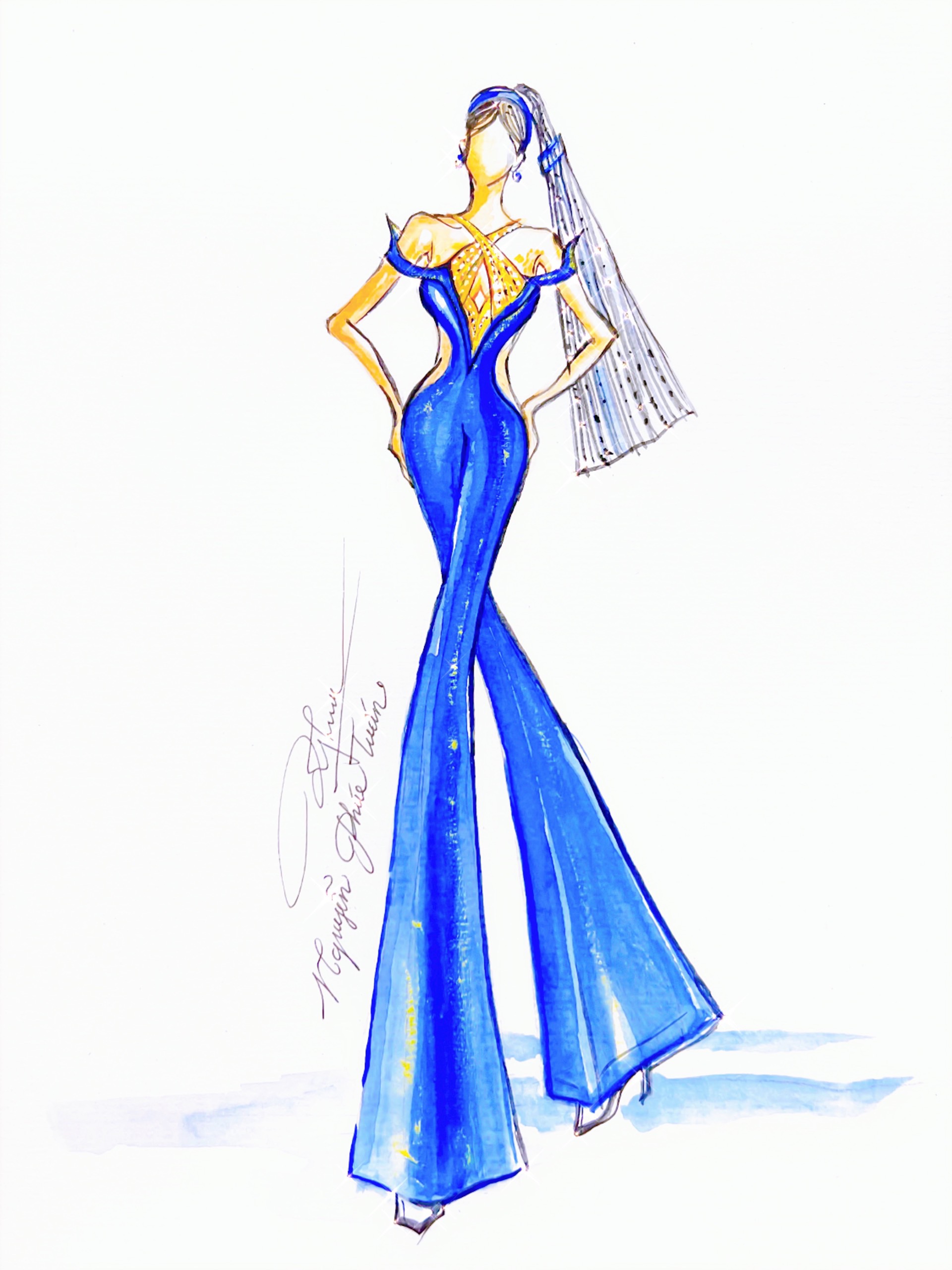 Tôi vẫn còn nhớ rất rõ, đó là mùa Top 3 Miss World 2022. Thời điểm đó, các thiết kế của tôi đều được ekip kiểm duyệt trước khi làm ra thành phẩm, với tôi, đã là một quy trình chuyên nghiệp. Cũng thật may mắn, tôi không phải chỉnh sửa gì nhiều.