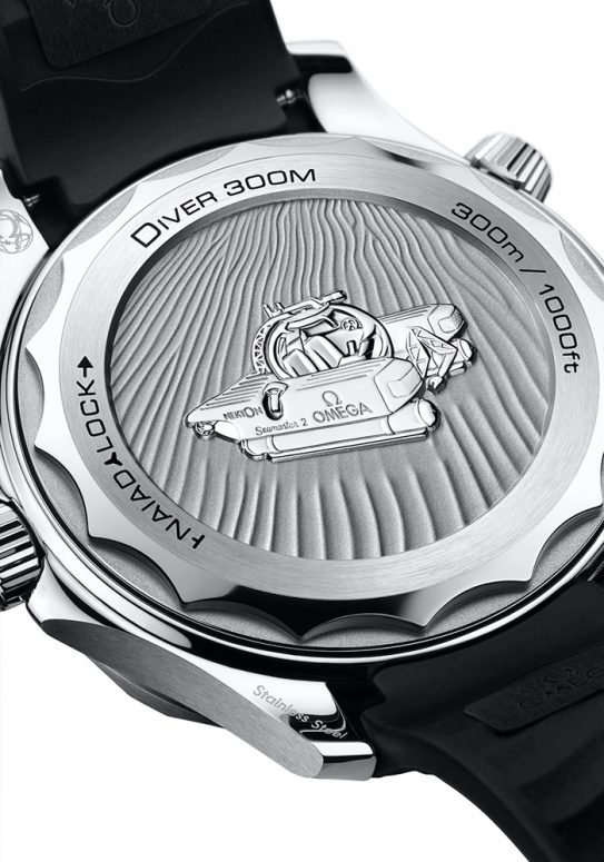 Omega Seamaster Diver 300M Nekton Edition sở hữu khá nhiều điểm tương đồng với các tạo tác thuộc bộ sưu tập Seamaster, như mặt số làm từ gốm đen với các họa tiết sóng nước được khắc laser, vòng bezel xoay hoàn thiện từ titan cấp 5 tích hợp thang đo thời gian lặn và khả năng kháng nước ở độ sâu lên đến 300m cực nổi tiếng của Omega. Nhằm vinh danh sự tận tâm của Nekton, phần nắp lưng của chiếc đồng hồ tự hào sở hữu huy chương tàu ngầm được chạm nổi cùng dòng chữ NAIADLOCK.