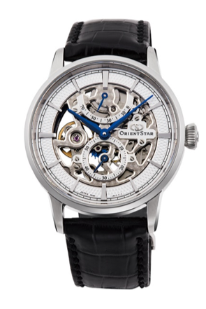 Orient Star Classic Skeleton xuất hiện dưới hai phiên bản gồm mặt số màu champagne kèm bộ máy màu vàng và mặt số màu trắng lắp máy màu bạc. Cả hai đều khoác lên mình bộ vỏ thép không gỉ kích cỡ 39mm, cùng dây đeo bằng da cá sấu tích hợp khóa gập được khâu thủ công tỉ mỉ.