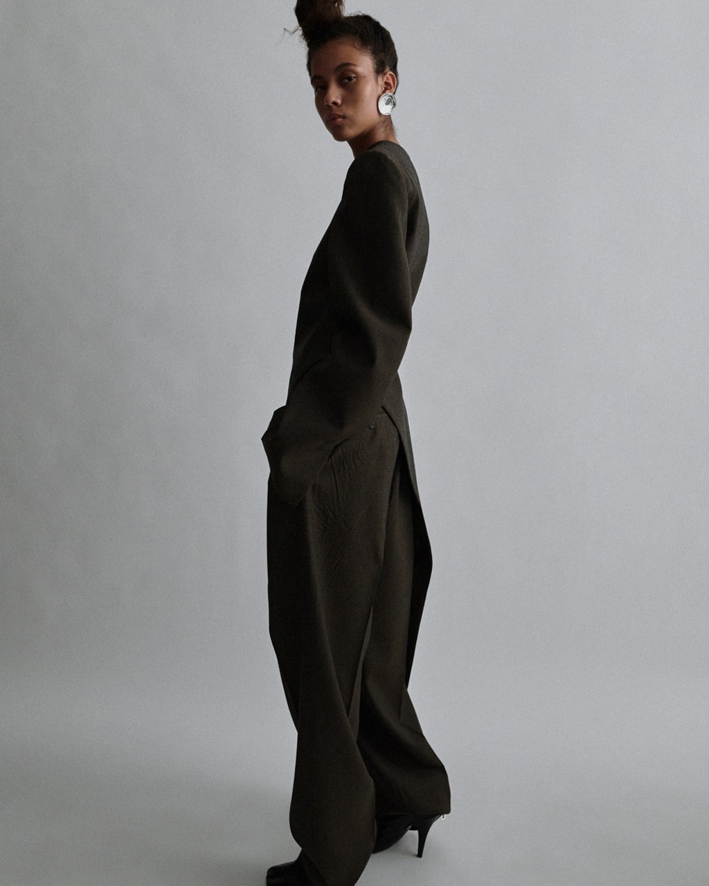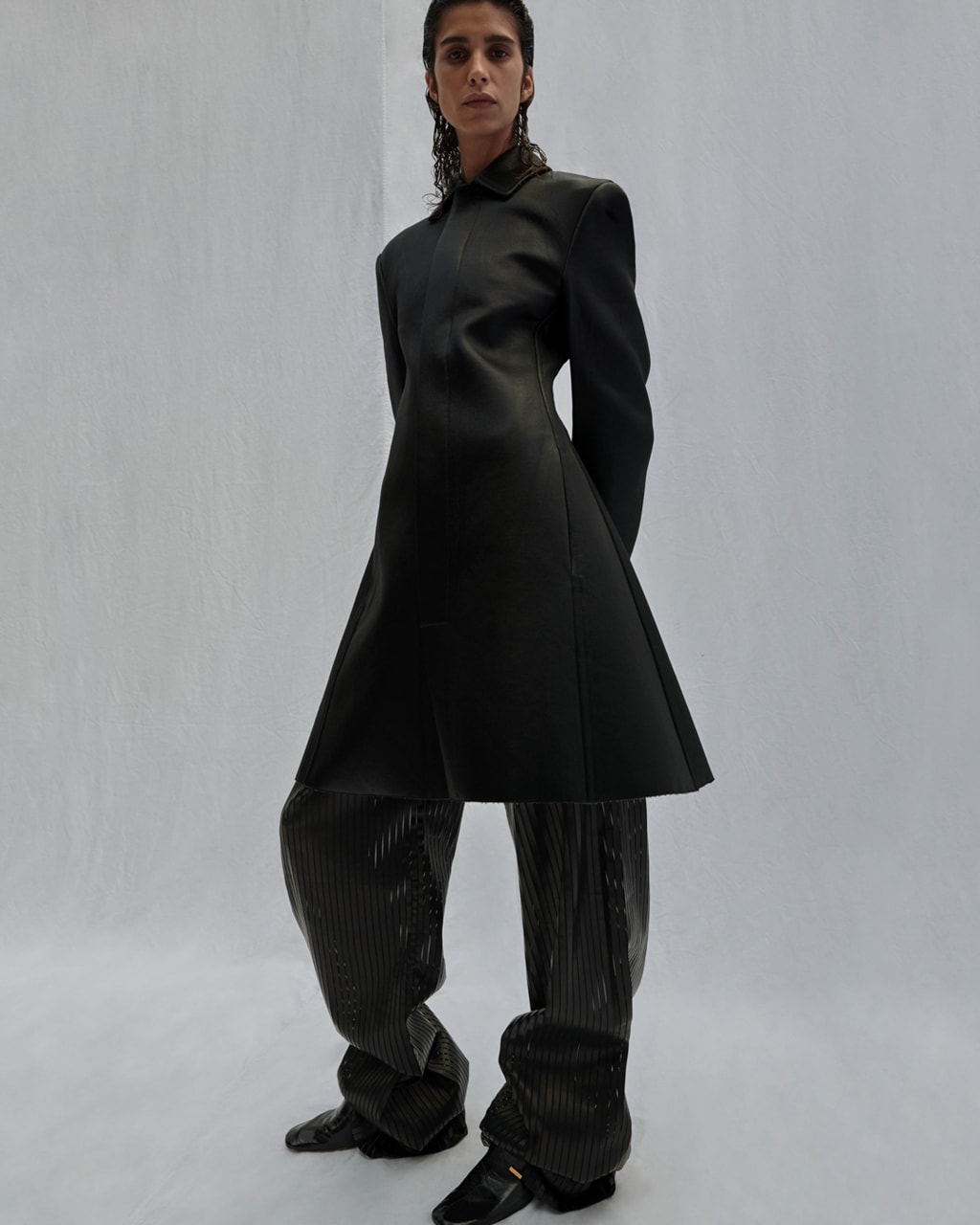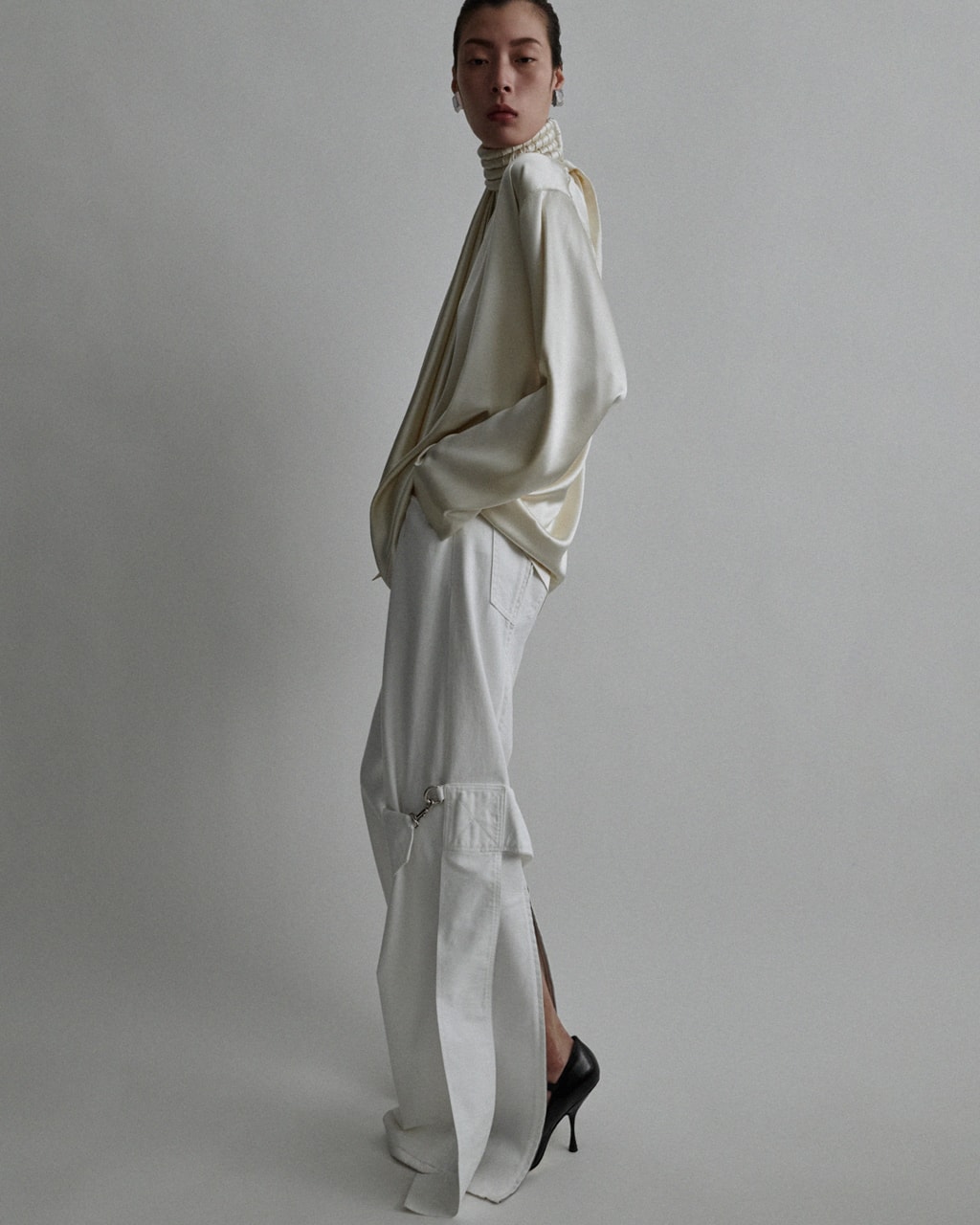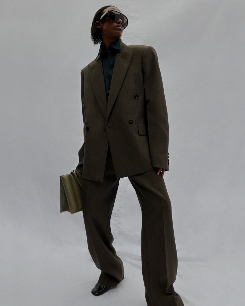 Ở sản phẩm đầu tiên của A1, hệ màu sắc khá được triển khai khá dè dặt, hiếm khi lệch khỏi các tông màu đen, trắng, ô liu và nâu đỏ; các họa tiết in cũng bị loại bỏ hoàn toàn. Nhưng đừng vì vậy mà nghĩ Phoebe Philo đang theo xu hướng “Quiet Luxury”, ngược lại với câu chuyện màu sắc, những đường cắt của cô mang đến sự táo bạo qua từng cấu trúc, hình dáng sắc sảo và lớp hoàn thiện kiểu cổ điển.