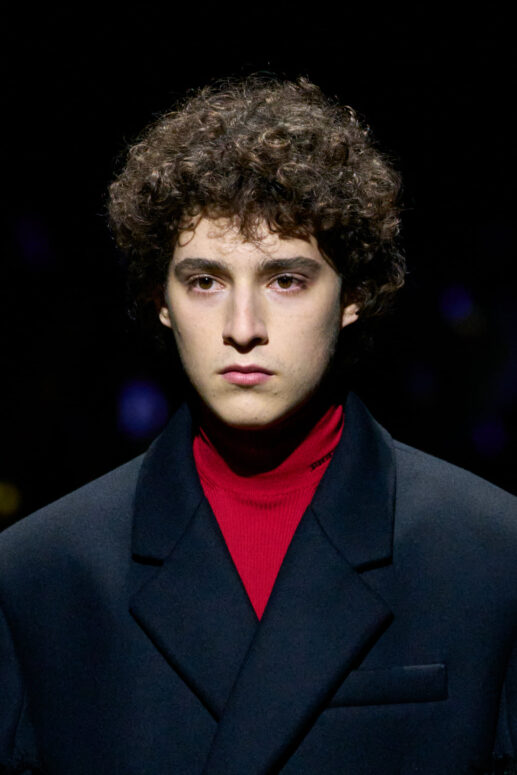 Có lẽ ấn tượng lớn nhất từ show diễn Prada Thu Đông 2022, với tôi, vẫn là dáng đi hào sảng có chút điệu đà của Jeff Goldblum trong chiếc áo khoác dài đệm lông ở phần vạt áo và cùi chỏ. Còn lại – từ kiểu dáng, chất liệu cho đến loạt diễn viên nam trải rộng nhiều độ tuổi – là những hình ảnh đậm chất Raf Simons, như những gì ông đã từng công bố cho thế giới trước đây.