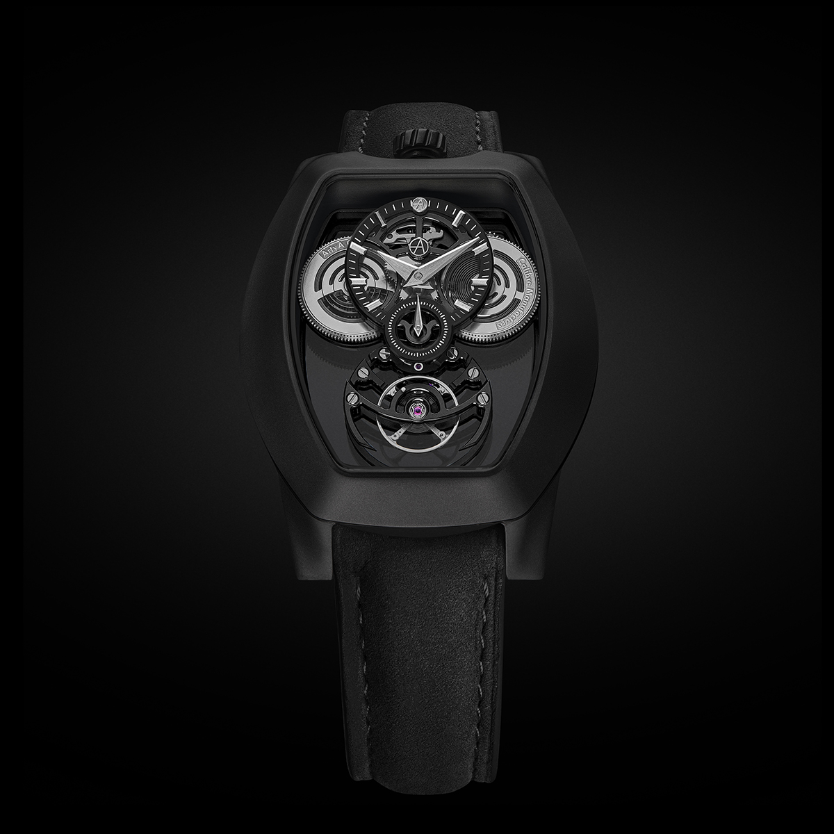 Chiếc đồng hồ được chế tác từ titanium cấp 5, vốn là vật liệu mang tiêu chuẩn hàng không, nhưng dưới bàn tay của ArtyA, chất liệu này được nâng tầm qua sự tinh xảo ở cấp độ cao nhất. Lớp hoàn thiện mờ chủ đạo được tạo nên hoàn toàn bằng đánh bóng thủ công, sau đó là phun cát, đem đến bề mặt như “hút” ánh sáng thay vì phản chiếu.