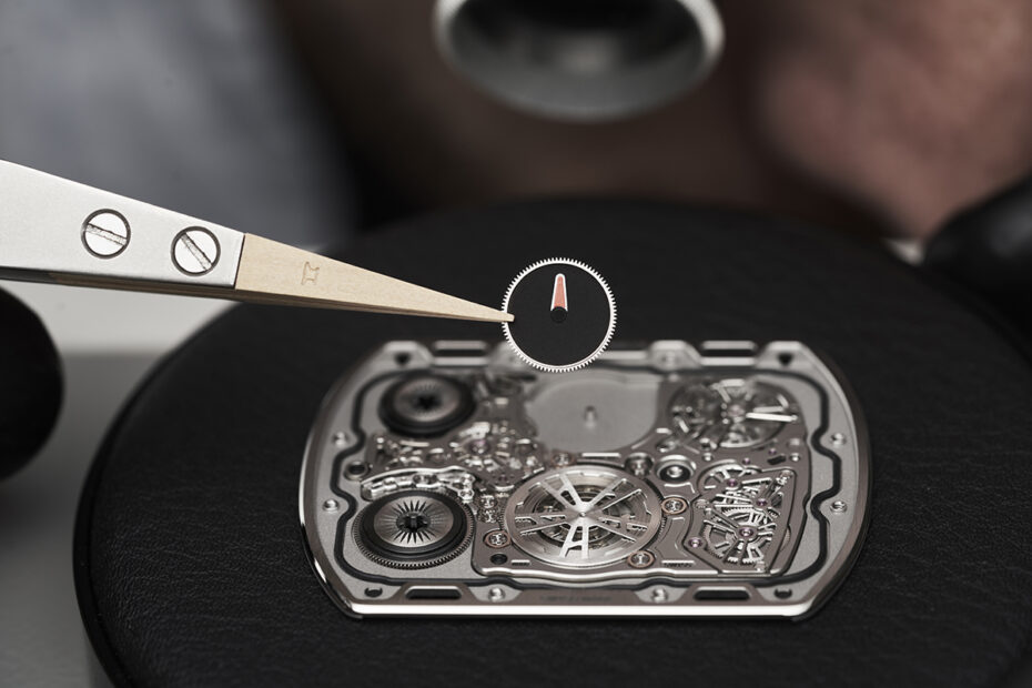 Bộ cót phẳng bổ sung đã được cấp bằng sáng chế còn được trang bị một dây tóc cực kỳ tốt và cấu trúc của bộ thoát cũng được thiết kế lại hoàn toàn. Ngoài ra, để tối ưu độ dày của đồng hồ, tấm đỡ của bánh xe cân bằng và chốt bảo vệ đã được loại bỏ. Bộ thoát siêu phẳng mới cũng được cấp bằng sáng chế. Titan đã được chọn làm vật liệu chế tác vỏ đồng hồ nhằm đáp ứng tiêu chí độ dày chỉ 1,75mm và khả năng chống nước ở độ sâu 10m vì những đặc tính ưu việt của chất liệu này trong việc kết hợp giữa độ nhẹ và khả năng chống chịu đã được thử nghiệm.