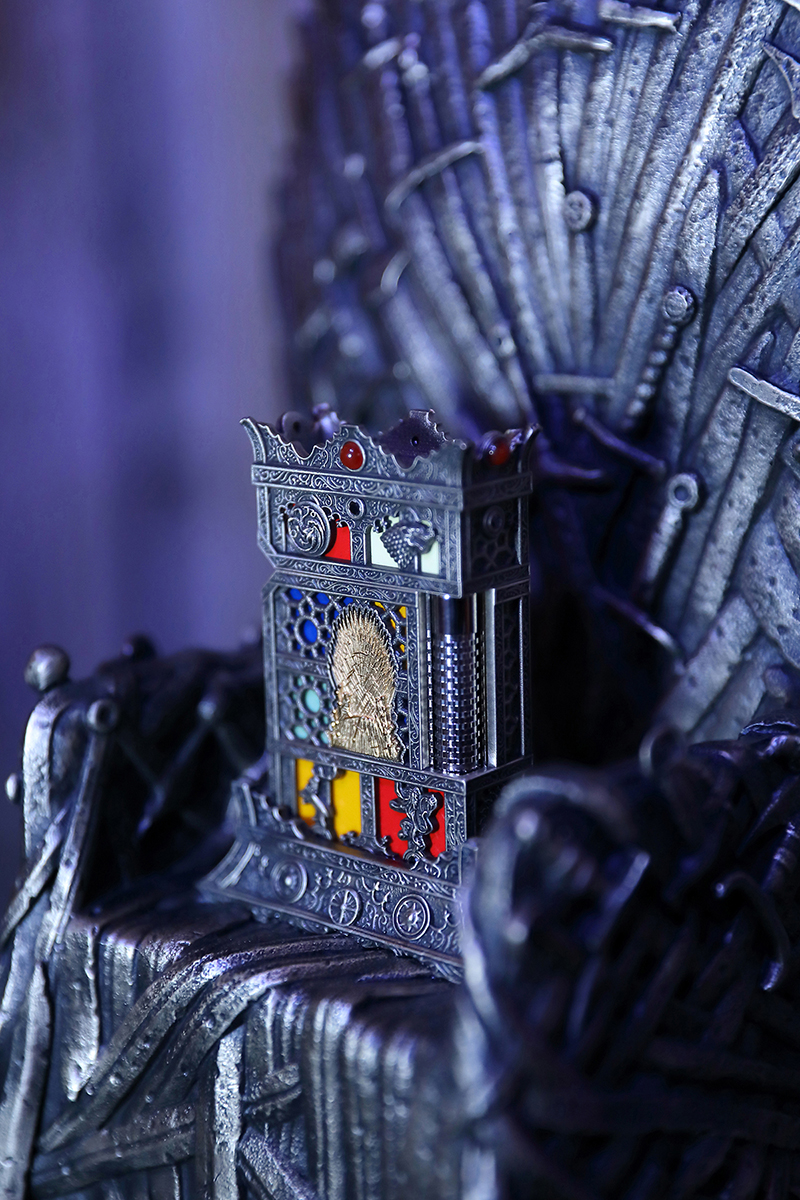 Game Of Thrones với cảm hứng từ bộ phim cùng tên, được đặt trên chiếc Ngai Sắt huyền thoại bằng đồng thau trắng giả cổ.
