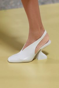 Cũng trong BST, dép quai hậu mũi vuông xuất hiện nổi bật cùng hai phiên bản mô phỏng F-wedge.