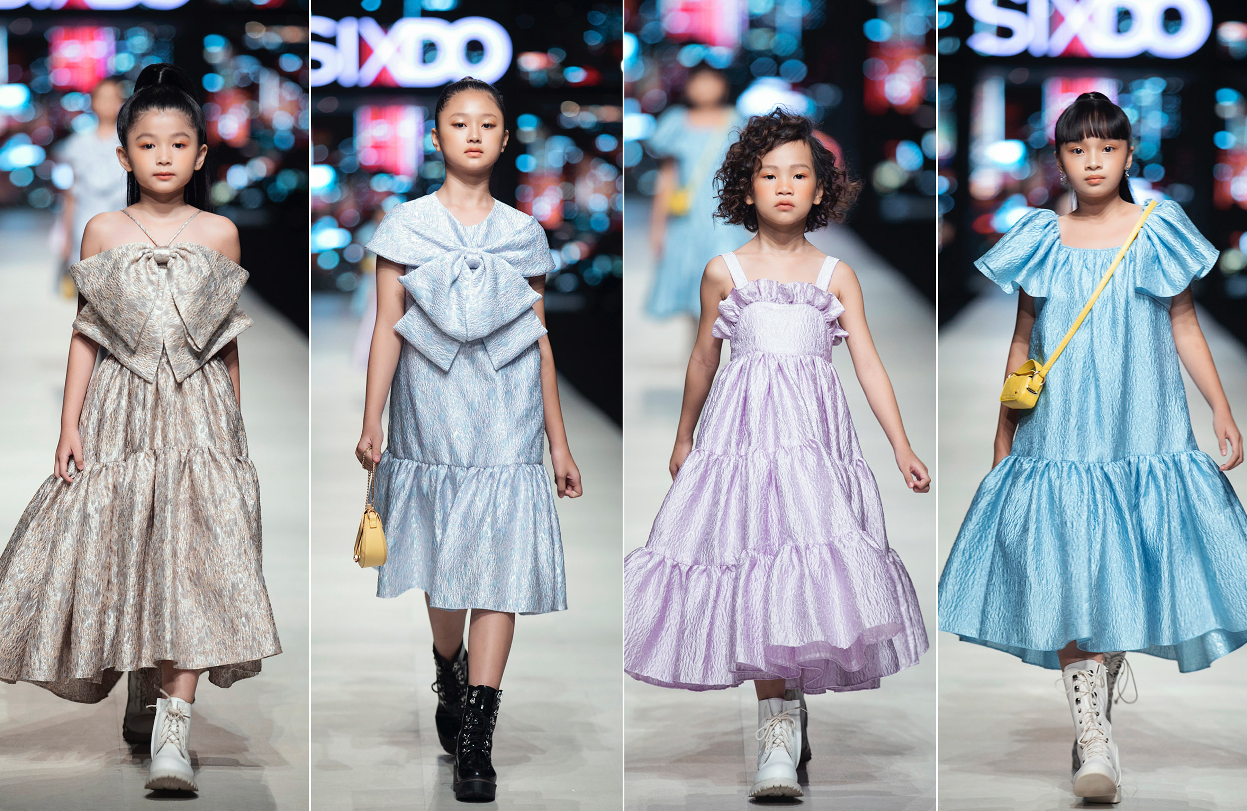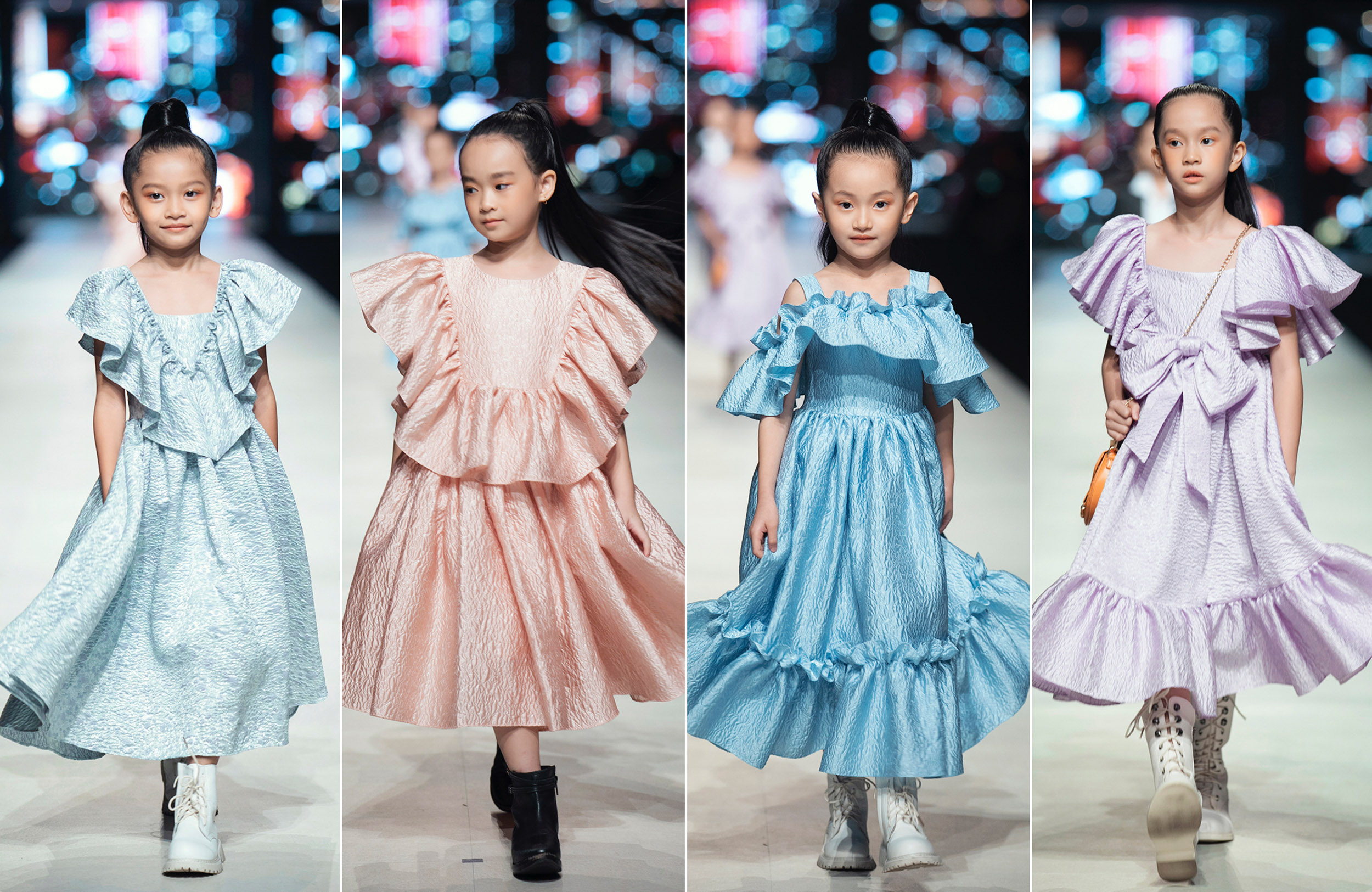 Không còn giới hạn trong những bộ trang phục dành tặng cho các con hay khách hàng thân thiết, trang phục trẻ em nay đã được dành hẳn một phần trong show diễn mới này. Bay bổng trong những mảng màu pastel trên nền chất liệu chính là gấm, taffta và organza, bộ sưu tập với sự xuất hiện của các người mẫu nhí đáng yêu nhận được không ít sự tán dương của khán giả thưởng lãm. Được biết, để cho ra đời dòng sản phẩm cao cấp nhưng với mức giá tầm trung này, Đỗ Mạnh Cường đã làm việc với nhiều nhà máy để sản xuất chất liệu riêng, để đảm bảo định hướng là tạo ra dòng sản phẩm phù hợp với số đông và có mức giá hợp lý, theo đúng chất lượng và tinh thần của các thiết kế cộp mác Đỗ Mạnh Cường.