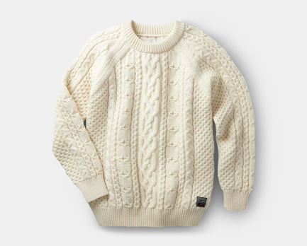 Chiếc áo Westport Aran màu trắng của thương hiệu Aubin được khâu cứng cáp và dệt bằng len cừu có tính năng không thấm nước.