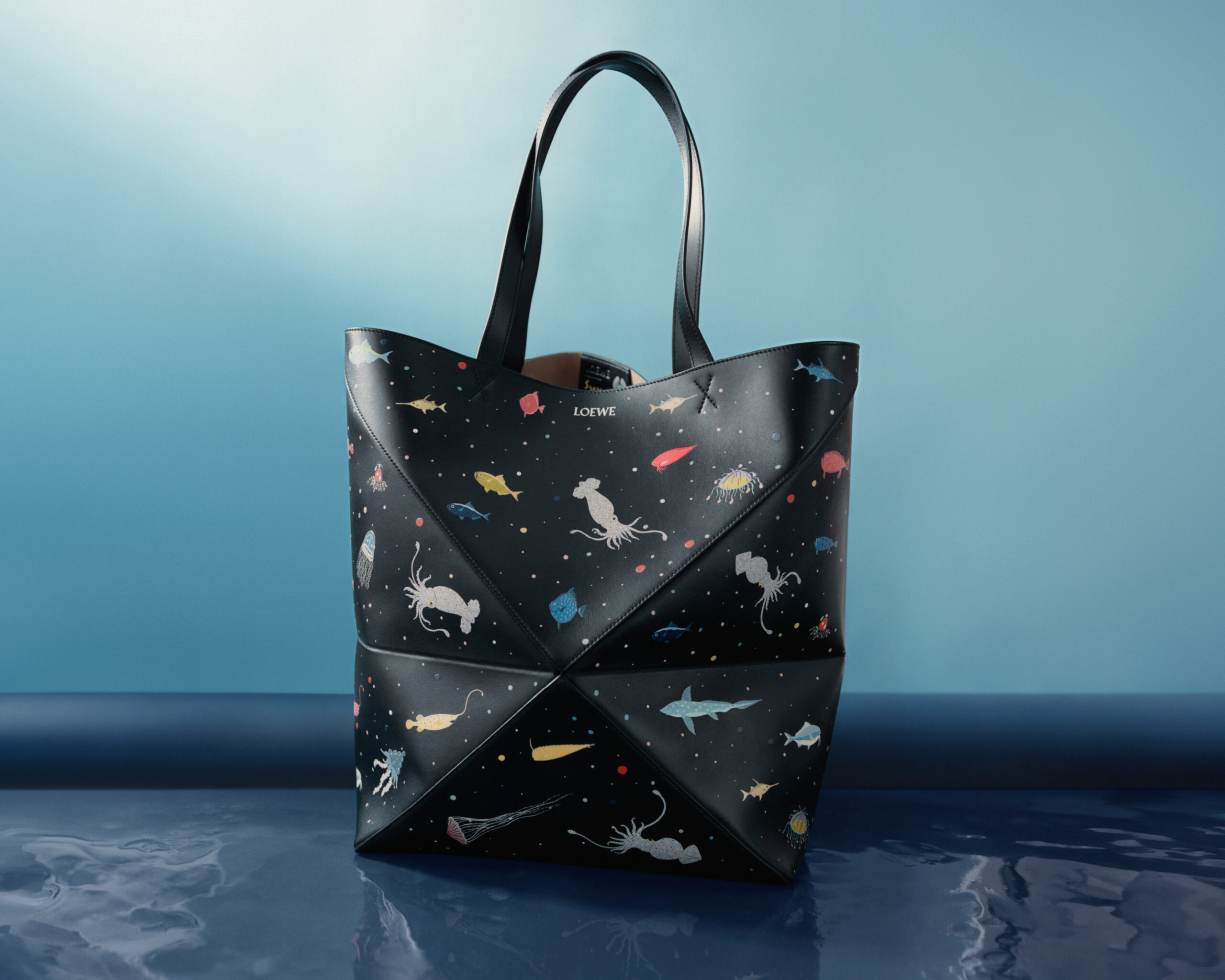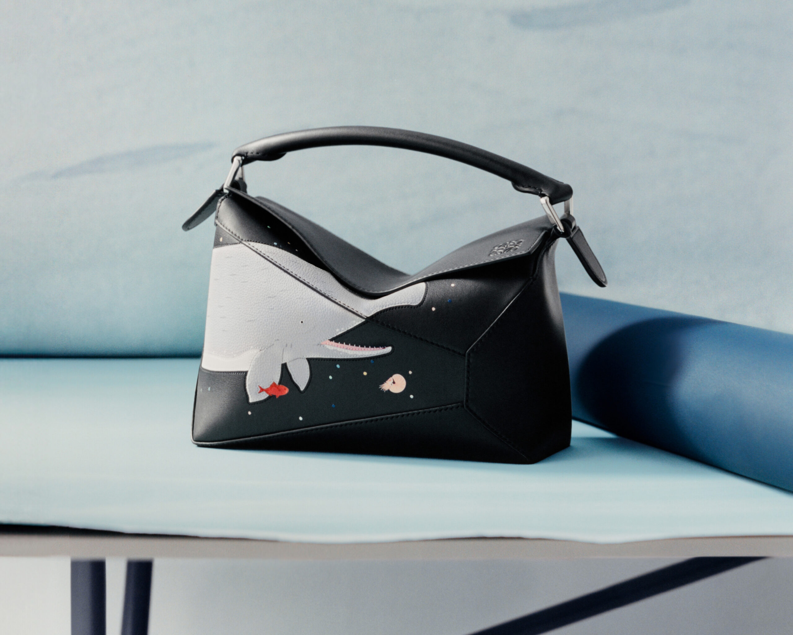Những sinh vật dưới đại dương, như bạch tuộc và mực ống, nhảy múa tung tăng quanh túi Flamenco và Hammock, trong khi cá voi xanh lướt qua các thiết kế Puzzle và Pebble Bucket. Tất cả đều được chế tác từ kỹ thuật ghép da thủ công tỉ mỉ, kết hợp bảng màu lấy cảm hứng từ thế giới thủy sinh. Không chỉ có sinh vật biển, những chú thỏ và chuột lang tinh nghịch cũng góp mặt, điểm xuyết cho những chiếc túi đặc trưng với tông màu đất và xanh tươi. Những loài động vật đáng yêu tương tự được tái hiện trên các phụ kiện da nhỏ, dây đeo, túi đựng và phụ kiện mềm mại với họa tiết thêu, họa tiết in và ánh pha lê lấp lánh.