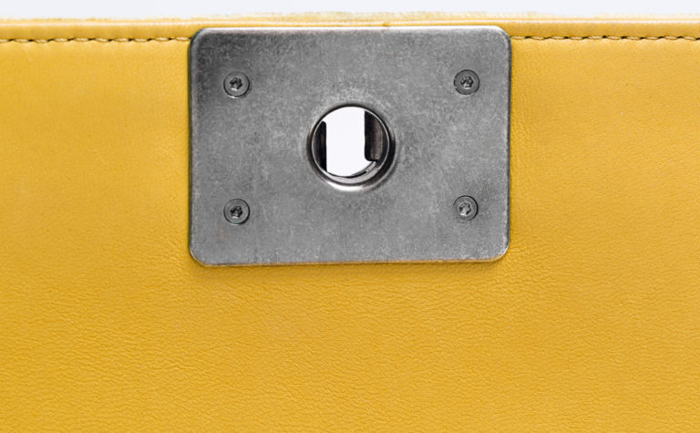 Ở mặt dưới của khóa, bạn sẽ thấy có bốn vít hình sao 6 cạnh. Nếu bạn nhìn thấy các vít đầu phẳng, dấu hiệu lớn là hàng giả. Chanel Classic Flaps cổ điển sẽ có vít đầu phẳng, nhưng Chanel đã chuyển sang loại vít độc quyền trước khi túi Boy được sản xuất.