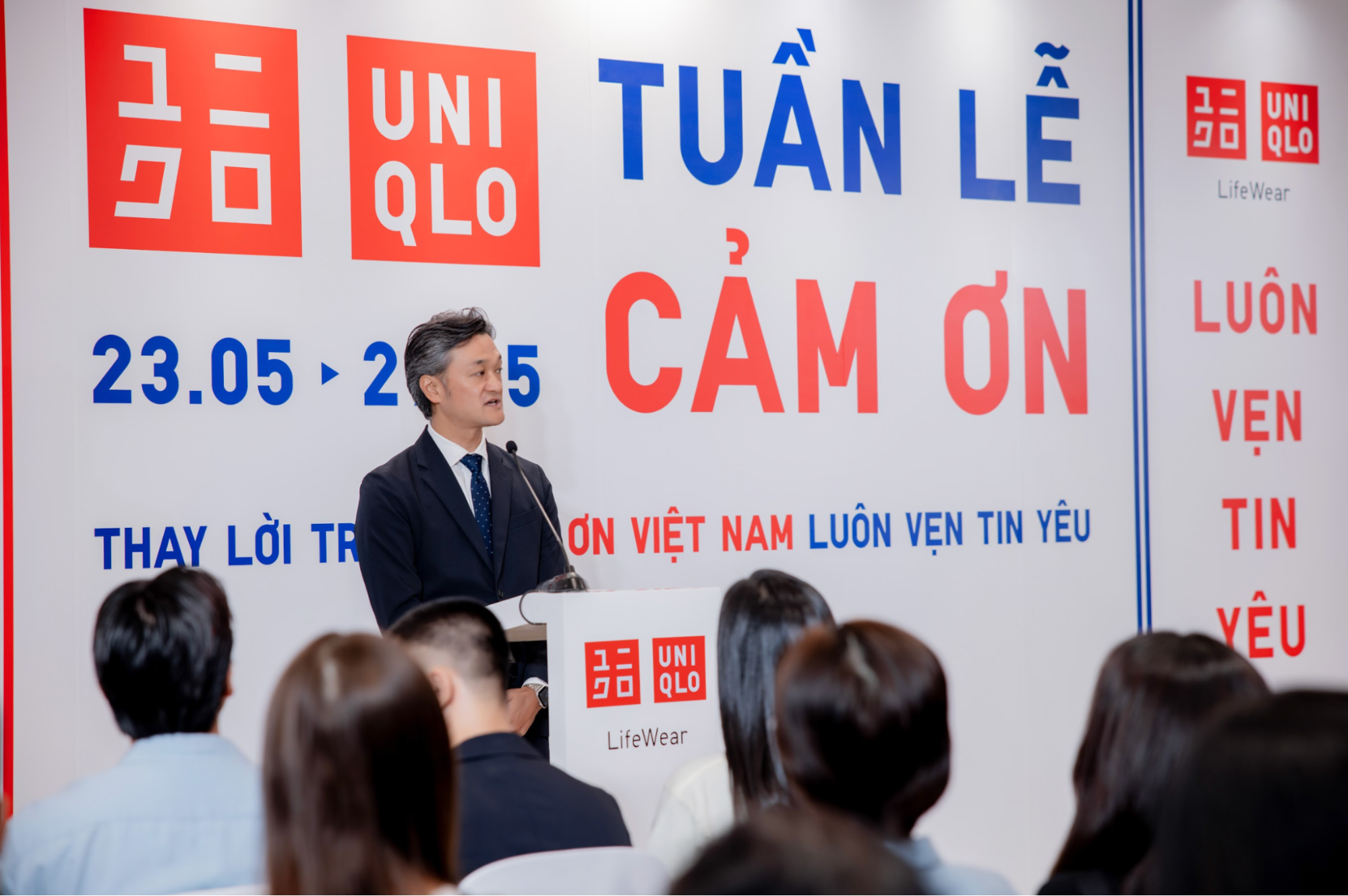 Phát biểu tại họp báo, ông Akiyama Naoki, Tổng Giám đốc UNIQLO Việt Nam, cho biết: “Trong Tuần Lễ Cảm Ơn, chúng tôi mong muốn mang lại những trải nghiệm mua sắm và dịch vụ tốt nhất cho khách hàng, như một lời cảm ơn chân thành. Sự ủng hộ và yêu mến của các bạn là nền tảng và động lực để UNIQLO phát triển như ngày hôm nay. Trong thời gian tới, chúng tôi sẽ tiếp tục tạo ra các sản phẩm LifeWear chất lượng, củng cố hơn nữa nỗ lực hỗ trợ cộng đồng và cam kết về tính bền vững trong hoạt động kinh doanh tại Việt Nam”.