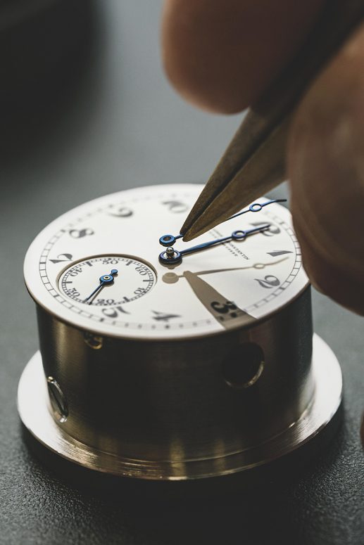 Mặt số với các chữ số và logo cổ điển trên nền men Grand Feu, đi cùng kim chỉ giờ rãnh hở thanh lịch nung xanh đều được thực hiện hoàn toàn thủ công, với kỹ thuật tuân thủ nghiêm ngặt các khuôn mẫu có từ đầu thế kỷ 20. Để đảm bảo không chi tiết nào bị bỏ qua, phần dây đeo cũng được làm lại theo tiêu chuẩn nghiêm ngặt, từ hình dáng chốt khóa, chất liệu vàng và da, toàn bộ được các nghệ nhân lành nghề nhất thực hiện in-house.