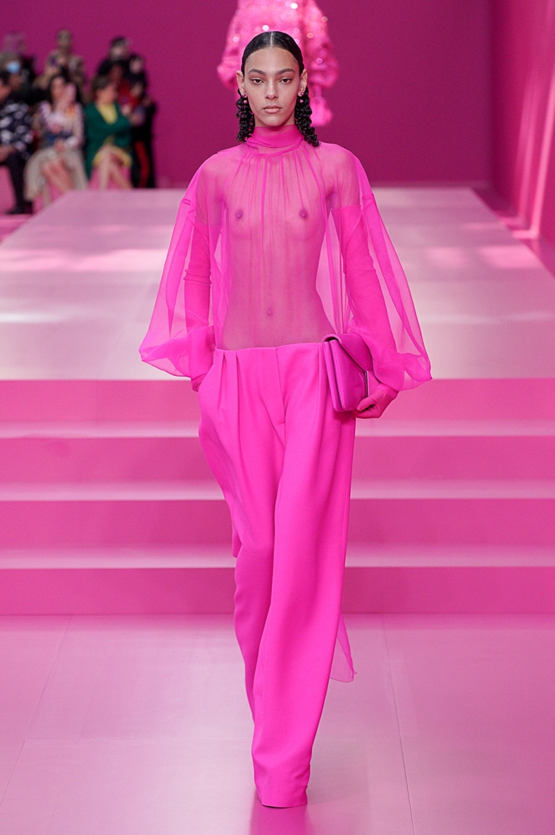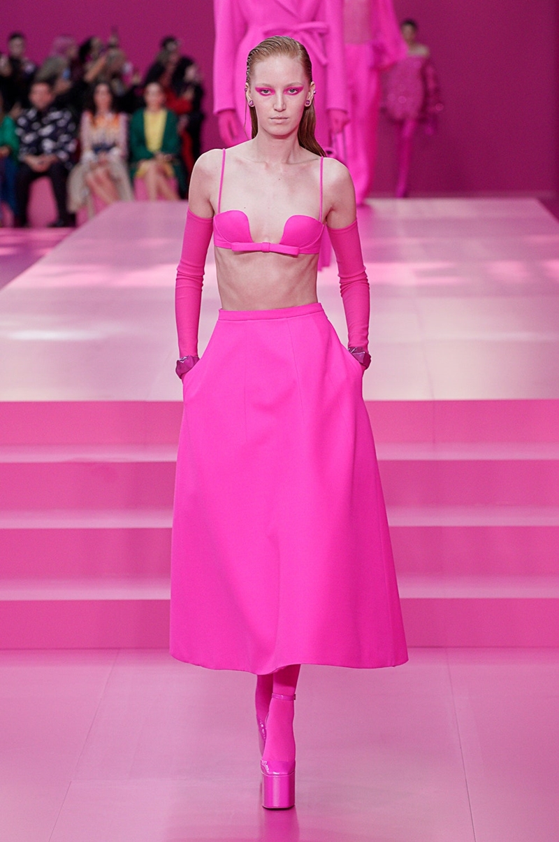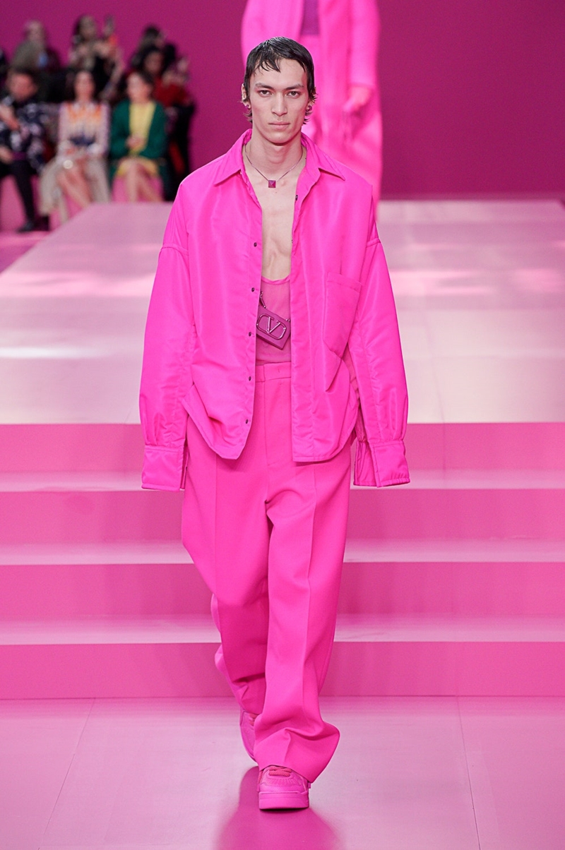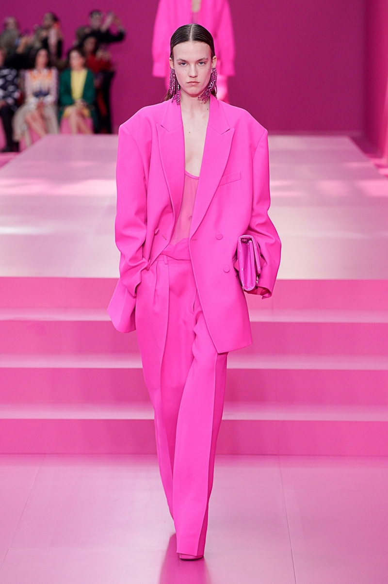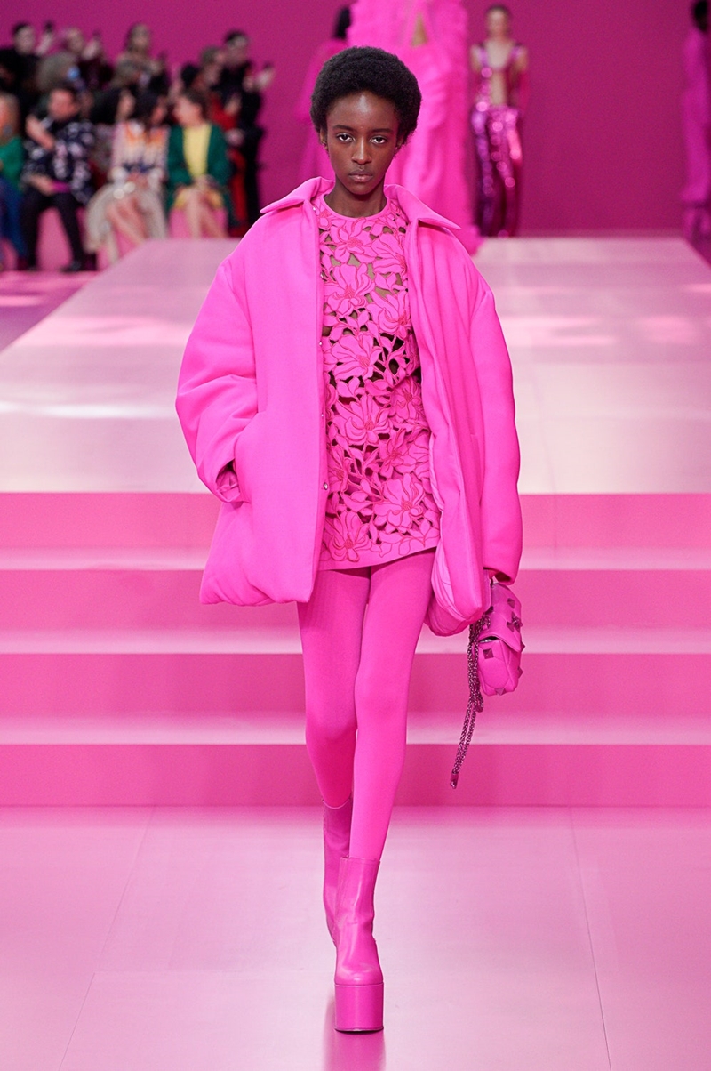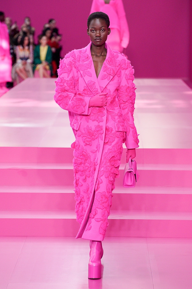 Đối với Valentino, sự tích tụ của màu hồng cũng là một biện pháp làm nổi bật tính cách con người, tập trung tôn vinh sự đa dạng của bản thể cá nhân trong hoàn cảnh sự đoàn kết là một điều thiết yếu. Khuếch đại cả con người và những bộ trang phục, nếu BST couture trước đó, Valentino cho chúng ta một sàn diễn với dàn cast đa dạng xuất sắc thì lần này, nhà mốt mang lại sự phong phú trong cả hình hài vật lý, tâm trạng, cảm xúc và cả những nỗi lo của phần đông cư dân thành thị.