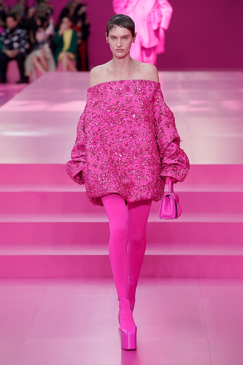 Trong sự xen kẽ và luân phiên thay đổi giữa những BST trắng hoàn toàn hoặc đen hoàn toàn, hồng neon có vẻ là sự lựa chọn quá mức mạo hiểm và khác lạ, chắc chắn rằng giữa việc mặc 1 cây đen và mặc 1 cây hồng, đen vẫn sẽ là màu sắc trung tính dễ xử lí hơn cả. Giải thích cho việc tạo nên một BST quá mức “chói mắt”, Piccioli cho rằng: “Màu hồng là biểu hiện của những mơ mộng vô thức và khát khao giải phóng của con người khỏi chủ nghĩa hiện thực”. Hay nói cách khác, đây là sắc độ của những giấc mơ, những màn thoát li khỏi thực tại mà trong giai đoạn đỉnh điểm khó khăn của cả chiến tanh và dịch bệnh, chúng ta chắc hẳn đều rất cần.