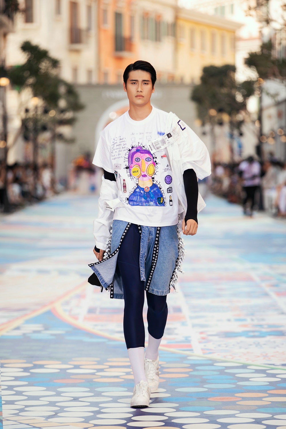 Không chỉ riêng việc kết hợp màu sắc thể hiện cái “ngông” khác người mà những màn phối chất liệu đa dạng như cotton, vải dù, jeans, vận dụng nhuần nhuyễn những kỹ thuật thêu đính bằng tay, xử lý vải tạo hình cấu trúc 3D mang đến hiệu ứng thị giác thú vị cũng trở thành những điểm nhấn đắt giá cho BST này.