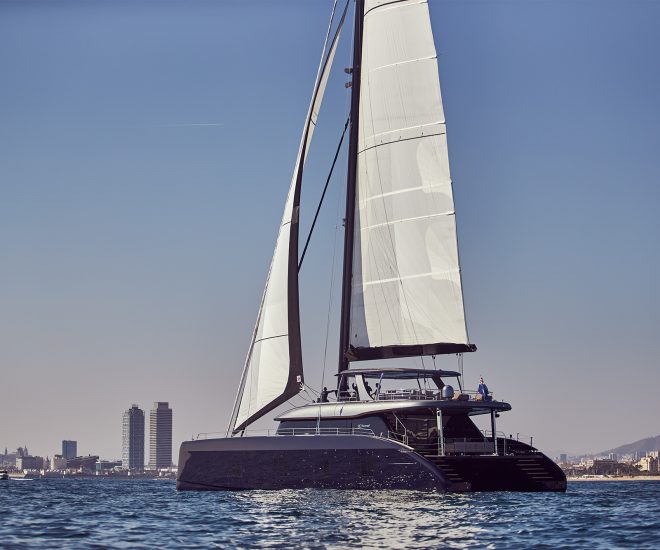 Lấy cảm hứng từ America Cup, siêu du thuyền bốn tầng Komorebi 148 có công nghệ lai và cánh buồm phá cách Oceanwings tự động của VPLP.