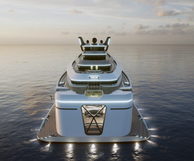 Lấy cảm hứng từ America Cup, siêu du thuyền bốn tầng Komorebi 148 có công nghệ lai và cánh buồm phá cách Oceanwings tự động của VPLP.