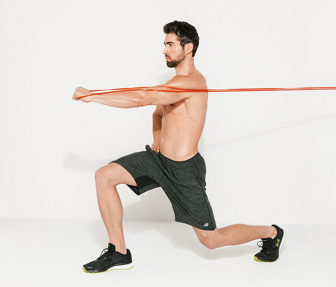 Các bài tập “chùng chân” (lunge) cũng mang lại hiệu quả cao khi kết hợp cùng dây kháng lực.