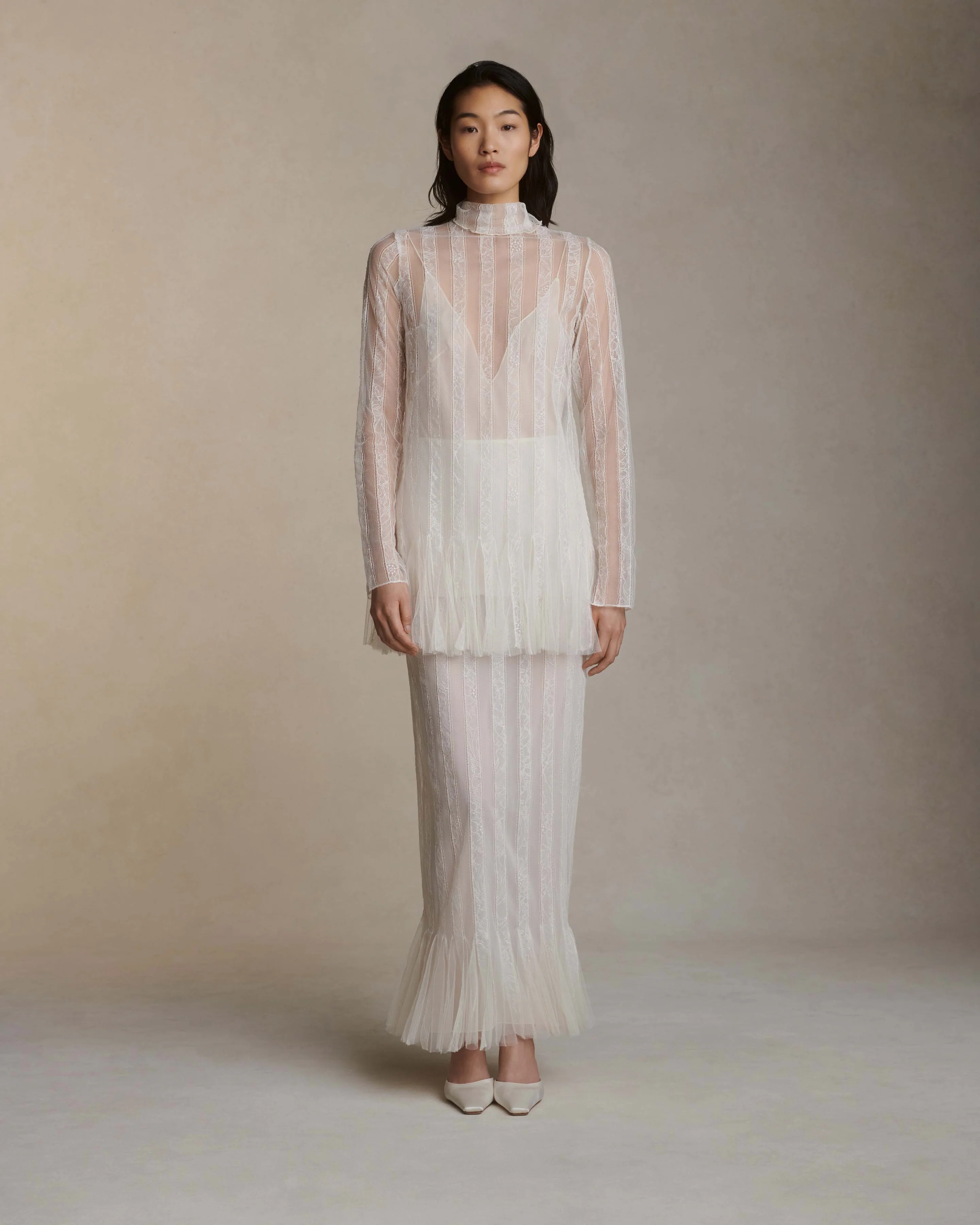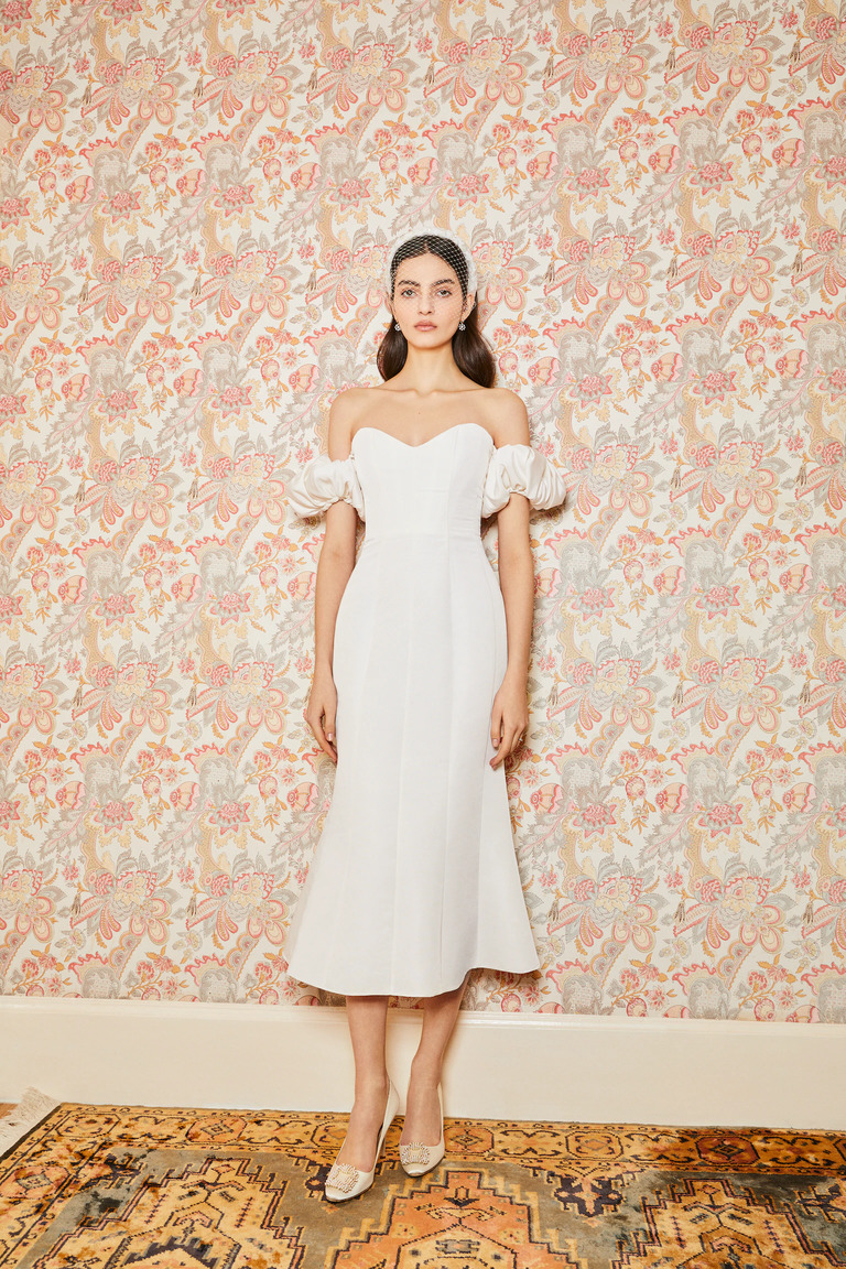 “Tea-length hemlines” là thuật ngữ chỉ những chiếc váy độ dài ngang bắp chân hoặc mắt cá chân. Trong mùa cưới 2023, các thương hiệu có xu hướng tạo nên những chiếc váy ngắn như một tuyên ngôn giải phóng người phụ nữ khỏi những quy chuẩn rườm rà.