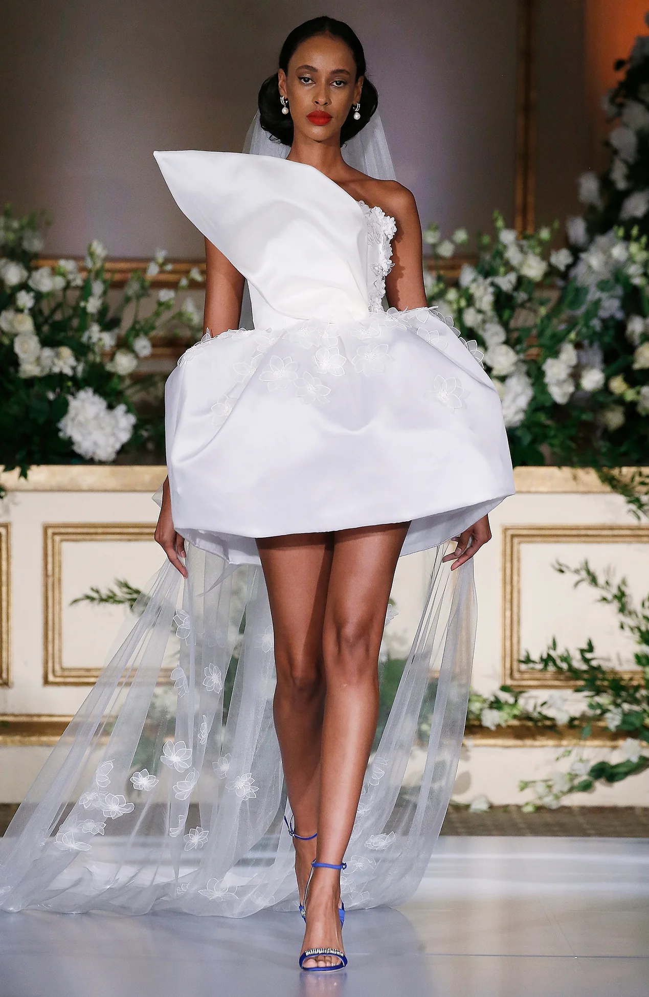 Đặc biệt, phong cách váy cưới này phù hợp với không gian tiệc cưới ấm cúng, thân mật bên gia đình và bạn bè thân thiết. Những thương hiệu nổi bật với phong cách lãng mạn, đưa chiếc váy ngắn của cô dâu lên một tầm cao mới trong mùa này phải kể đến Markarian, Esé Azénabor, Kim Kassas Couture hay Nardos.