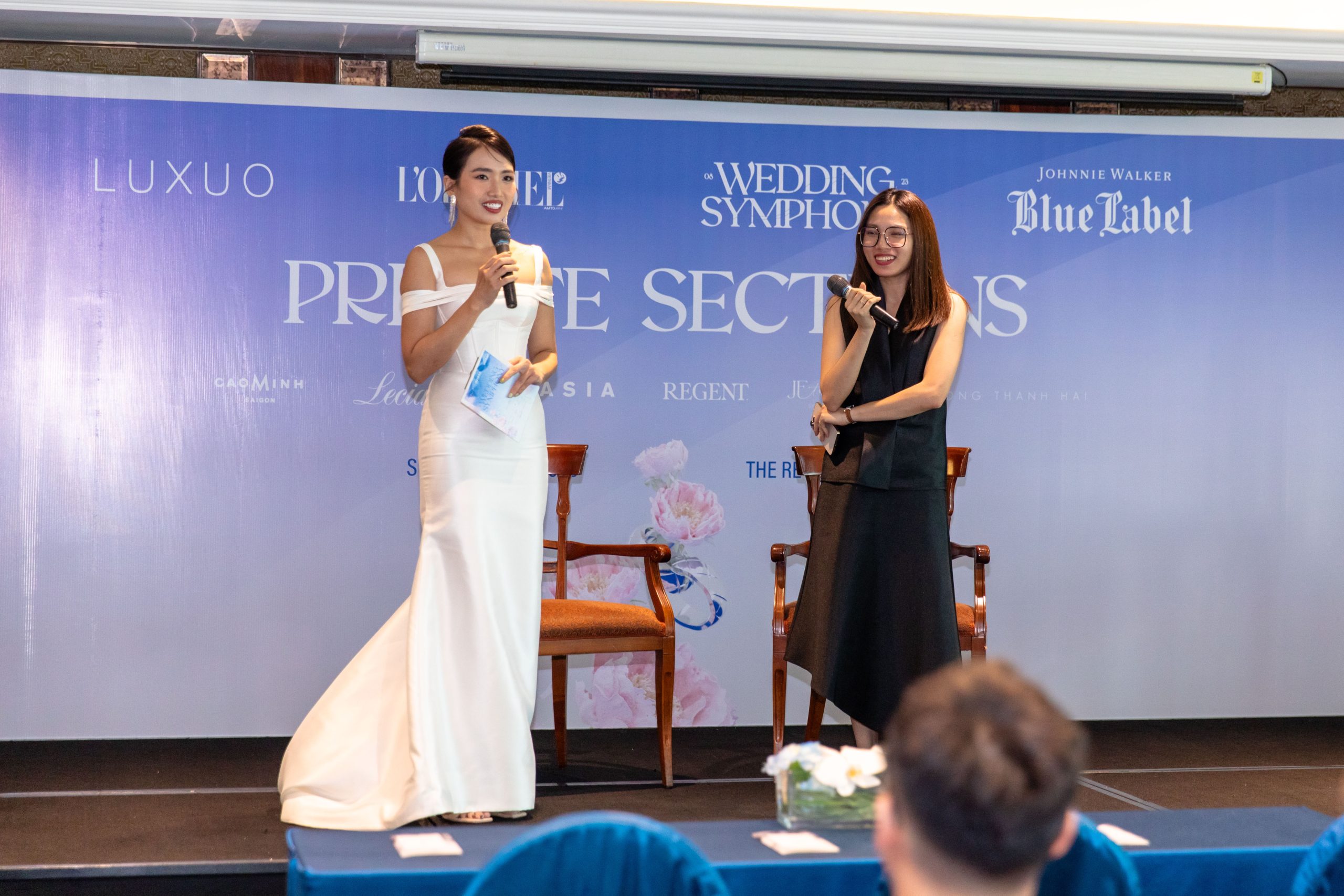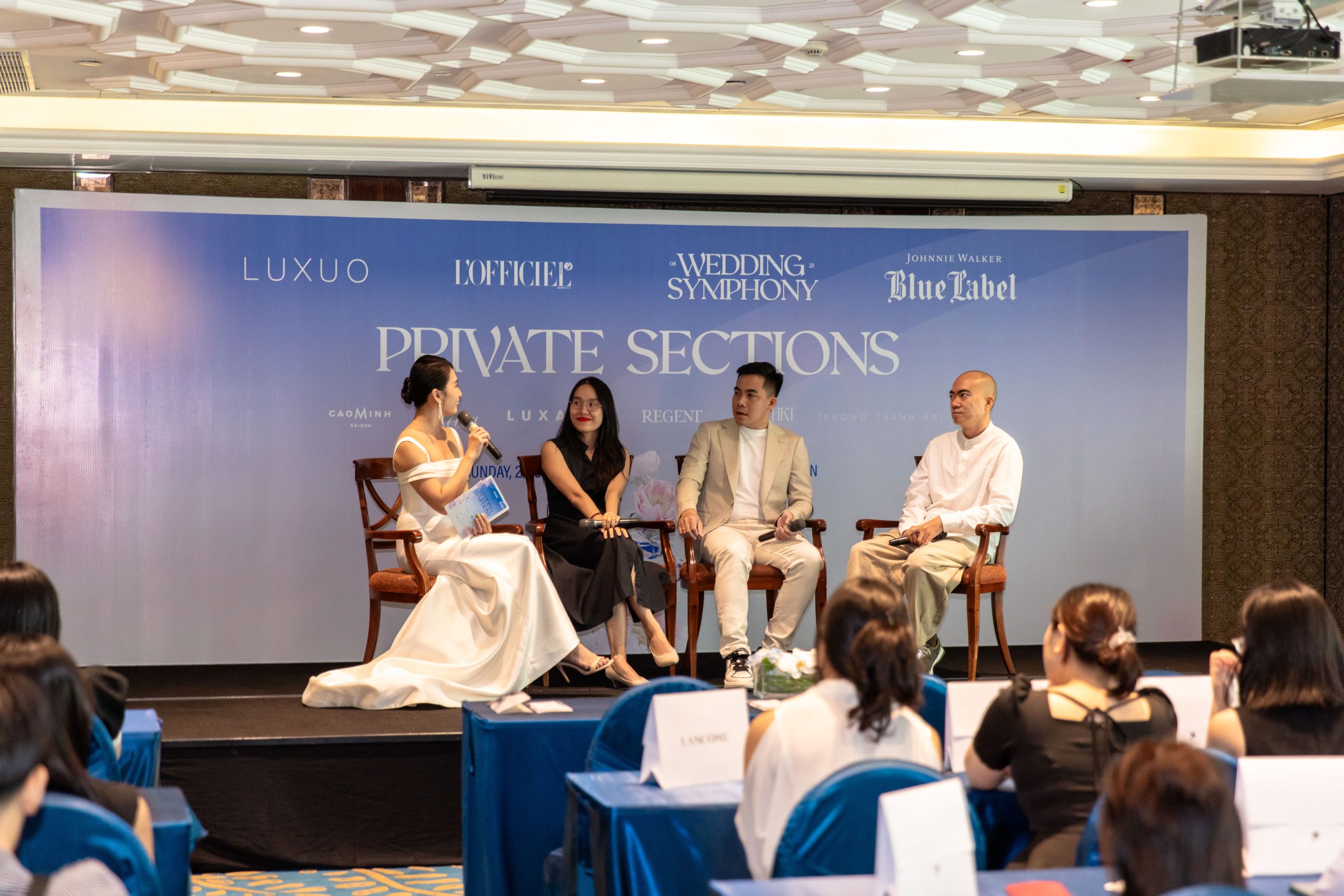 Nằm trong khuôn khổ sự kiện, Private Sections quy tụ những doanh nhân và nhà thiết kế thành công với nhiều câu chuyện truyền cảm hứng đến 60 cặp đôi tham dự, đang chuẩn bị bước vào cột mốc quan trọng của hành trình yêu. Toàn bộ vé được bán ra chỉ trong thời gian ngắn kể từ khi công bố, Private Sections với chủ đề “????? ?????? ???????” mang tới những chia sẻ độc quyền về nghệ thuật cưới “bespoke” và “quiet luxury” với 4 phần trò chuyện diễn ra xuyên suốt 4 giờ đồng hồ.