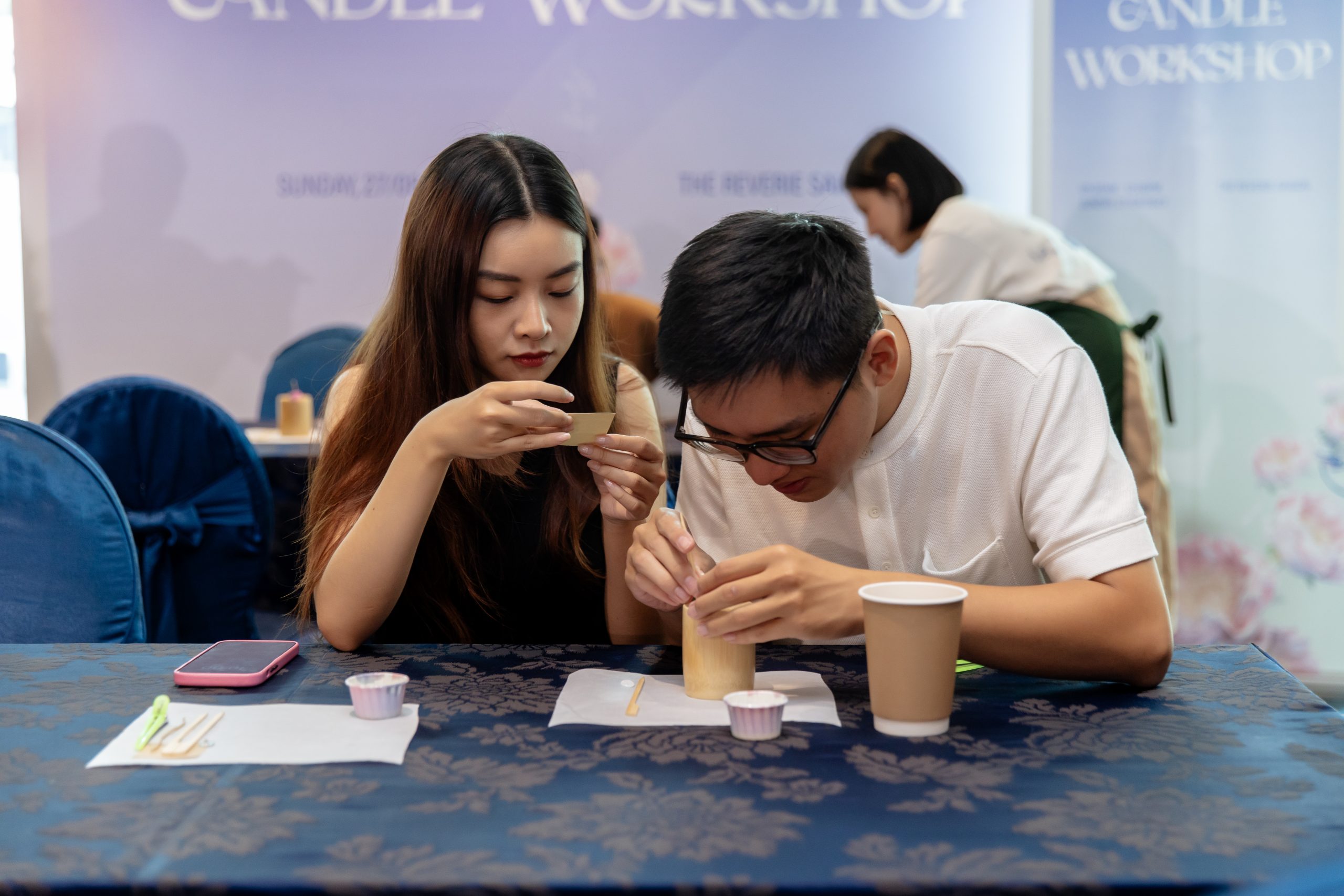 Là một trong những sự kiện đón nhận sự quan tâm nồng nhiệt nhất, chuỗi hoạt động Private Sections & Public Workshop chứng minh sức hút đặc biệt khi ghi nhận số lượng đăng ký lớn, thu hút đông đảo người tham gia ngoài dự kiến chỉ trong thời gian ngắn. Tại đây, hơn 35 cặp đôi tham dự đã cùng nhau tạo nên những kỷ niệm nhỏ thú vị với trải nghiệm làm nến organic và cắm hoa nghệ thuật dưới sự hướng dẫn của chuyên gia từ hai thương hiệu đã gây dựng thành công tên tuổi tại thị trường Việt – The Healthy Body và Liti Florist.