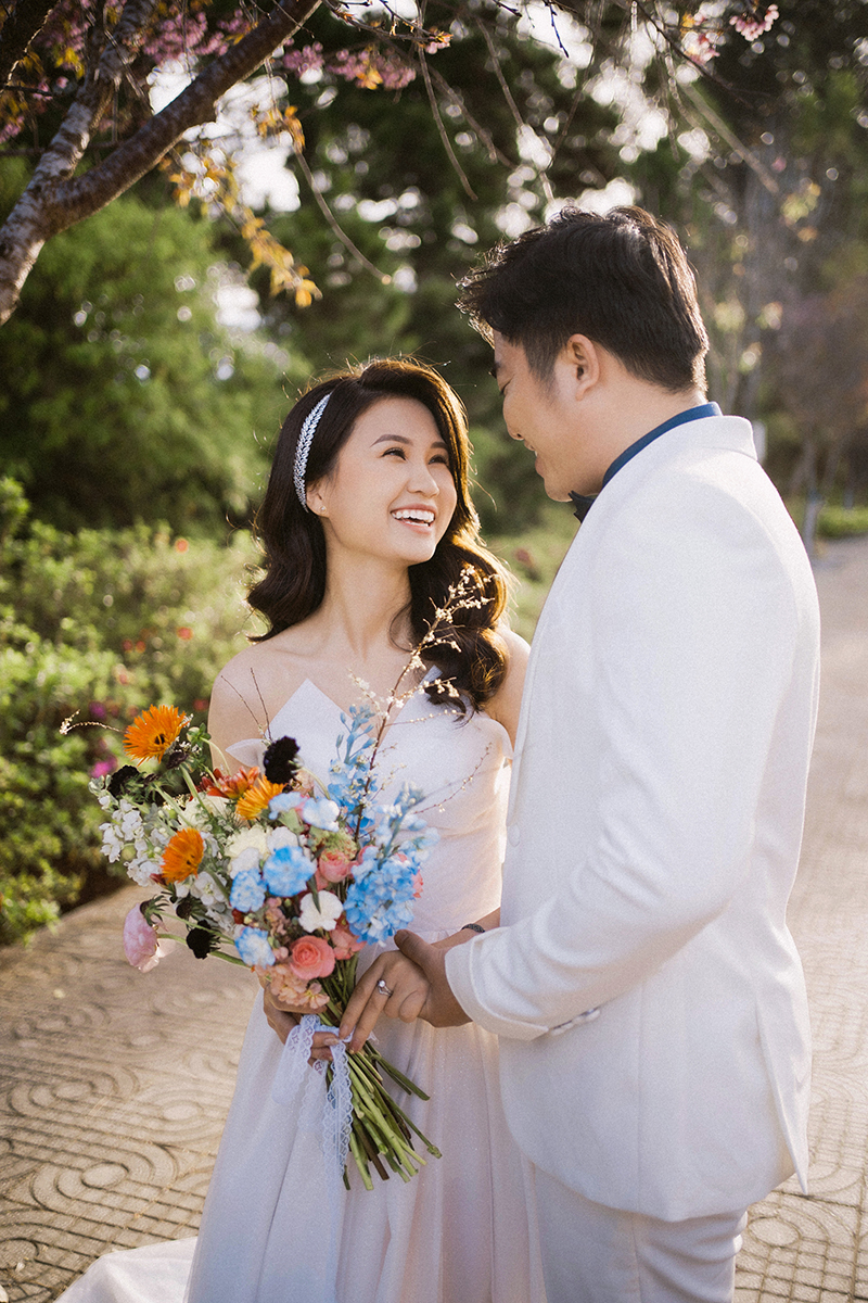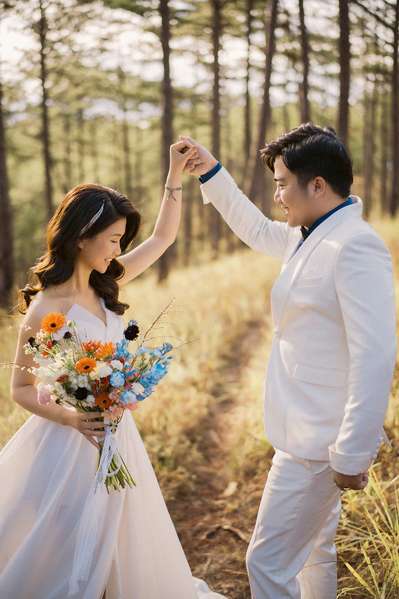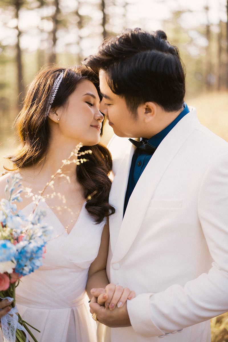 Những rừng thông reo, suối thác nên thơ, cánh đồng hoa rực rỡ đủ hương sắc. Được ưu ái với khí hậu mát lành quanh năm cùng cảnh sắc hữu tình, Đà Lạt trở thành điểm đến thịnh hành cho đôi lứa chụp ảnh cưới và tổ chức hôn lễ. Thủy và Hải là một trong những cặp đôi đó.