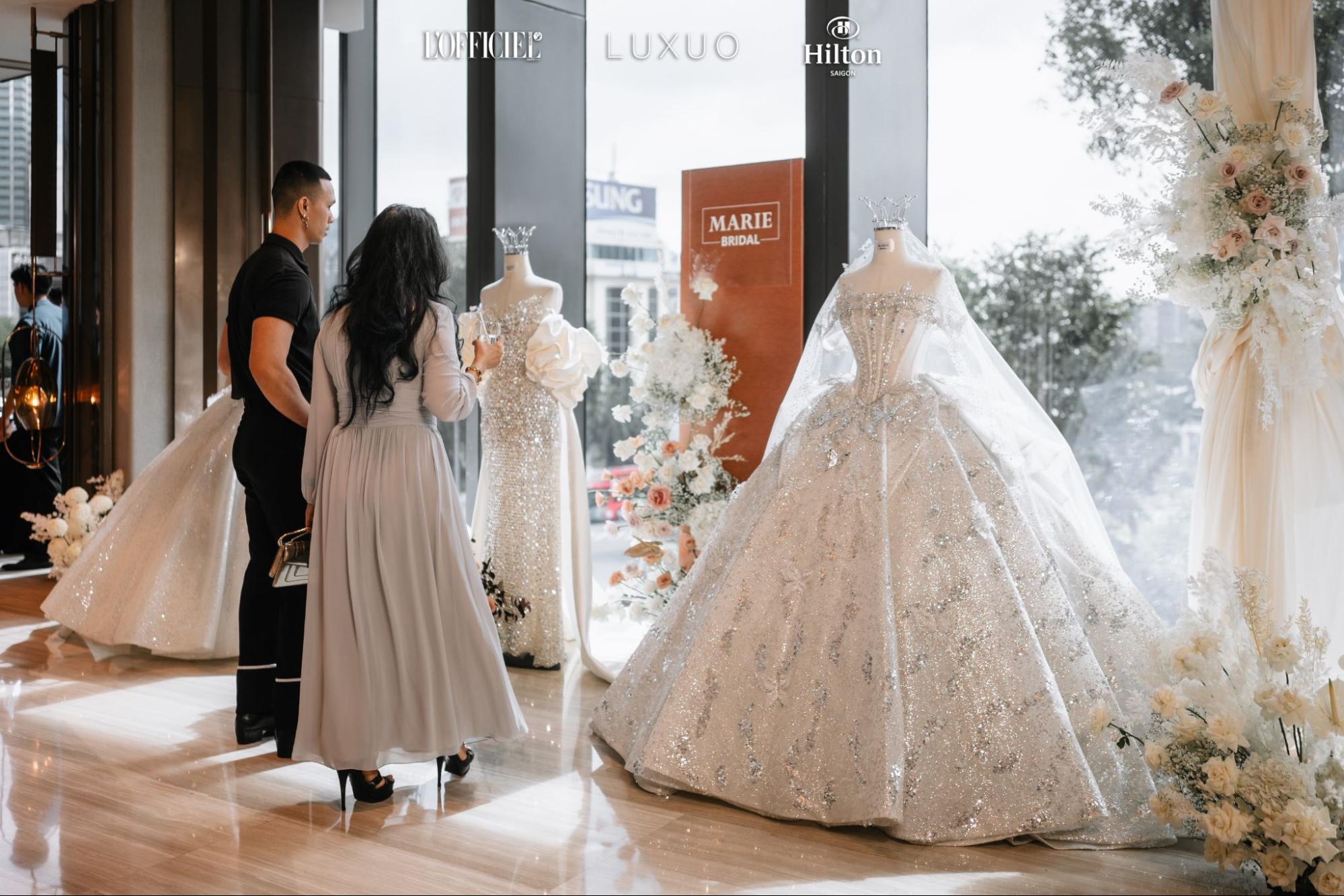 Tâm điểm xuyên suốt cả hai ngày là Wedding Art Gallery – không gian triển lãm giàu tính thẩm mỹ, nơi hội tụ những thiết kế cưới tinh xảo từ Cao Minh Sài Gòn, Chung Thanh Phong Bridal, Trịnh Hoàng Diệu, Hacchic Couture, Marie Bridal, cùng các tác phẩm thủ công và ý tưởng trang trí độc đáo. Bên cạnh đó, triển lãm còn có sự góp mặt của những thương hiệu và đối tác đồng hành như CAO Fine Jewellery, Jemmia Diamond, R Parfums, OHUI, Scavi & Ray, Socolatier, Impressivo, ONE CHAIR, Ren Florist và được tổ chức trong không gian sang trọng của Hilton Saigon.
